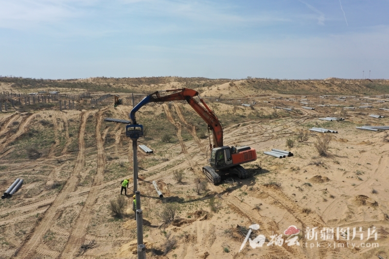 昌吉市北沙窩30萬千瓦光儲一體化低碳園區(qū)轉(zhuǎn)型新能源項目正在加緊建設(shè)(資料圖)。劉華 攝
