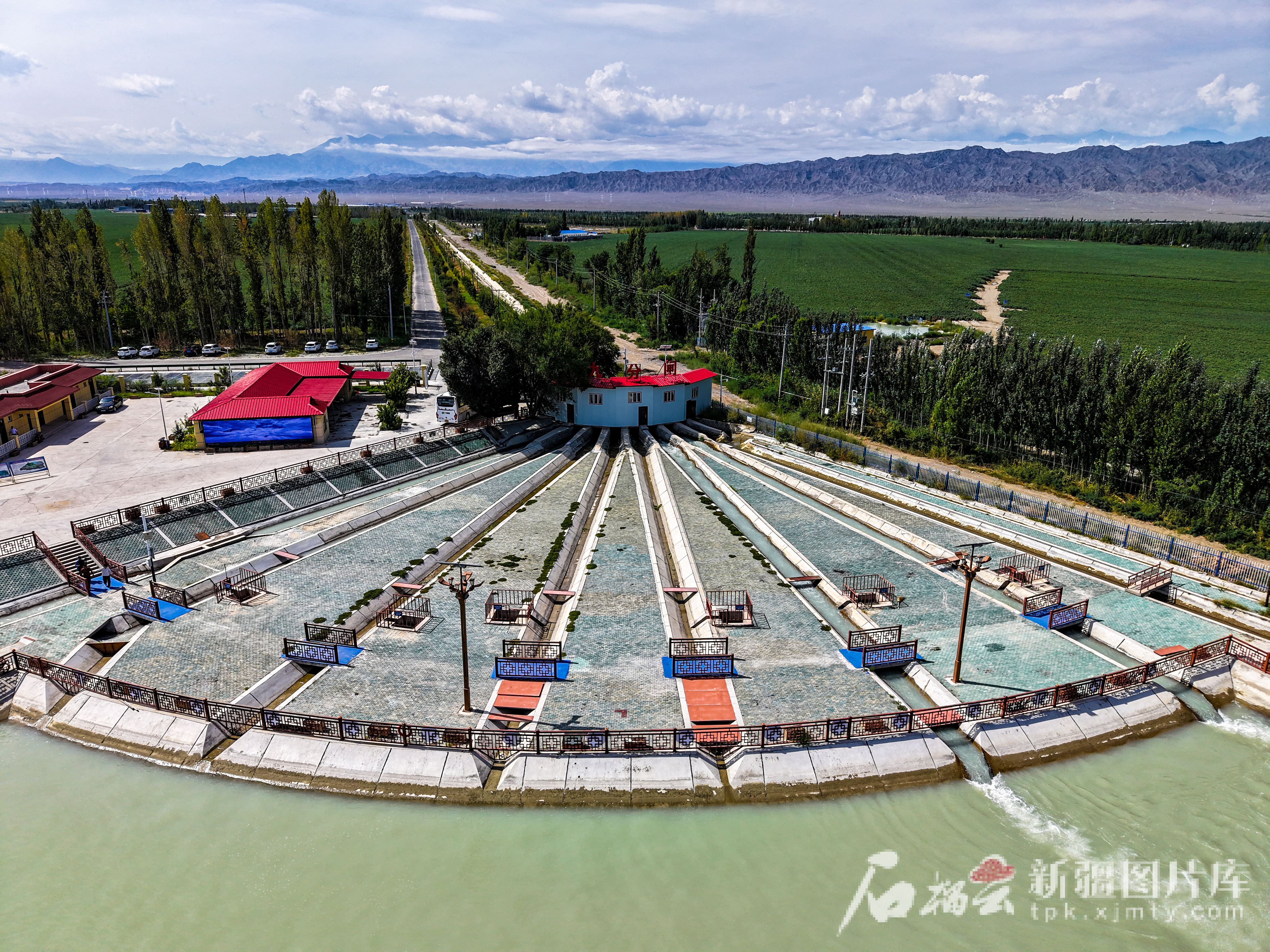 8月5日,博爾塔拉蒙古自治州精河縣大河沿子鎮(zhèn)九分閘閘口正在向灌溉區(qū)放水。