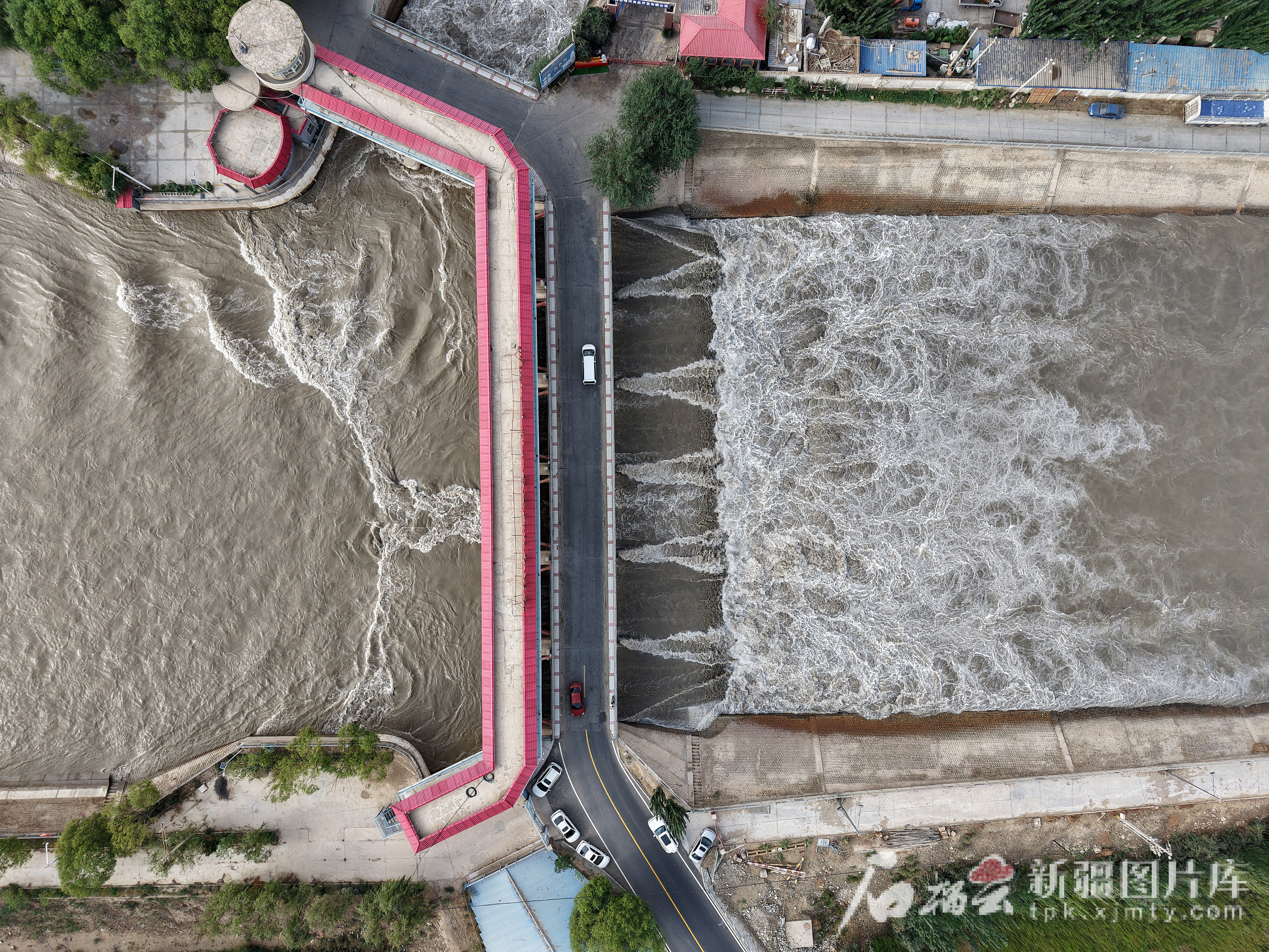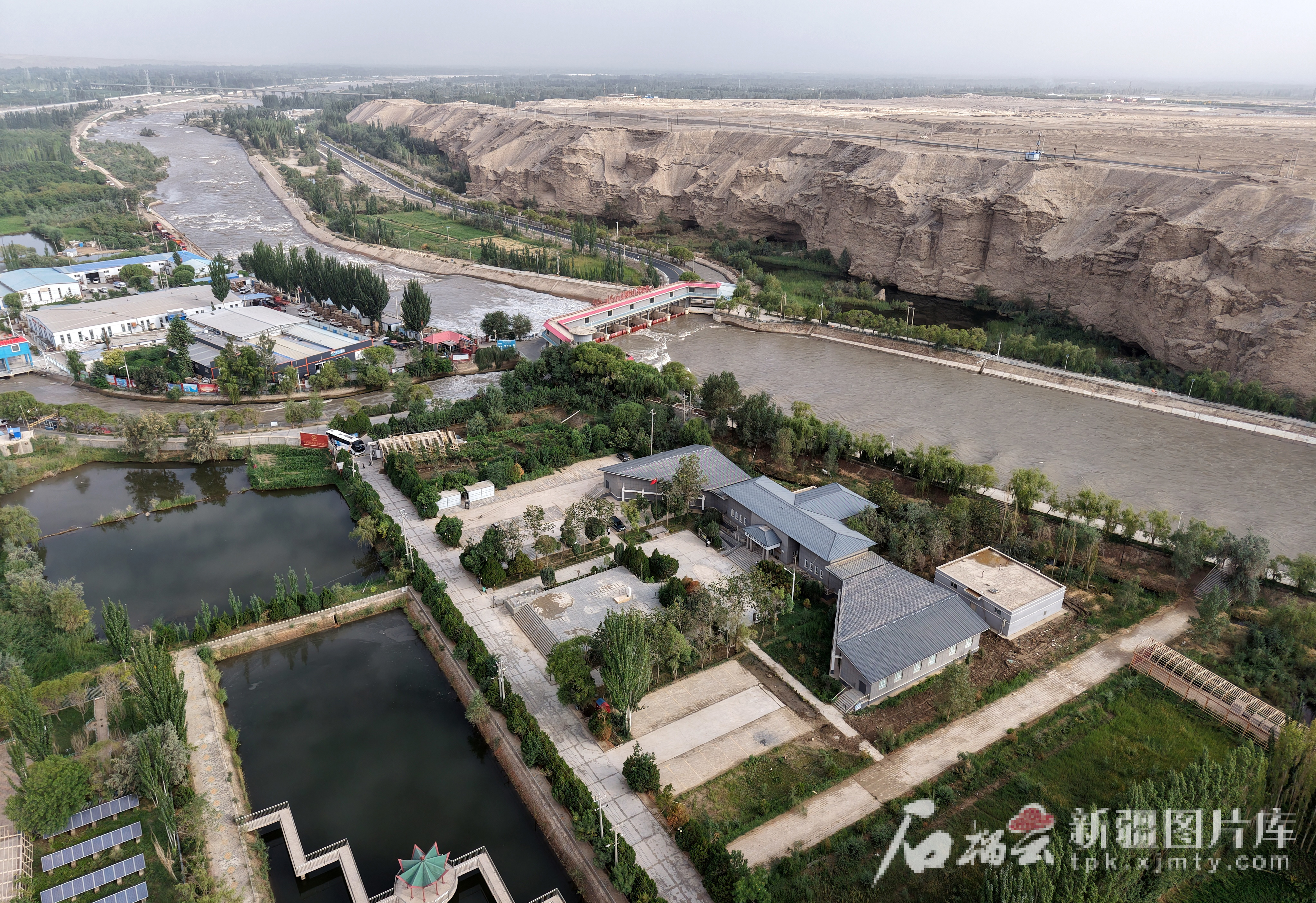 8月6日,俯瞰喀拉喀什河渠首愛國主義教育基地以及喀拉喀什河灌溉的村莊。