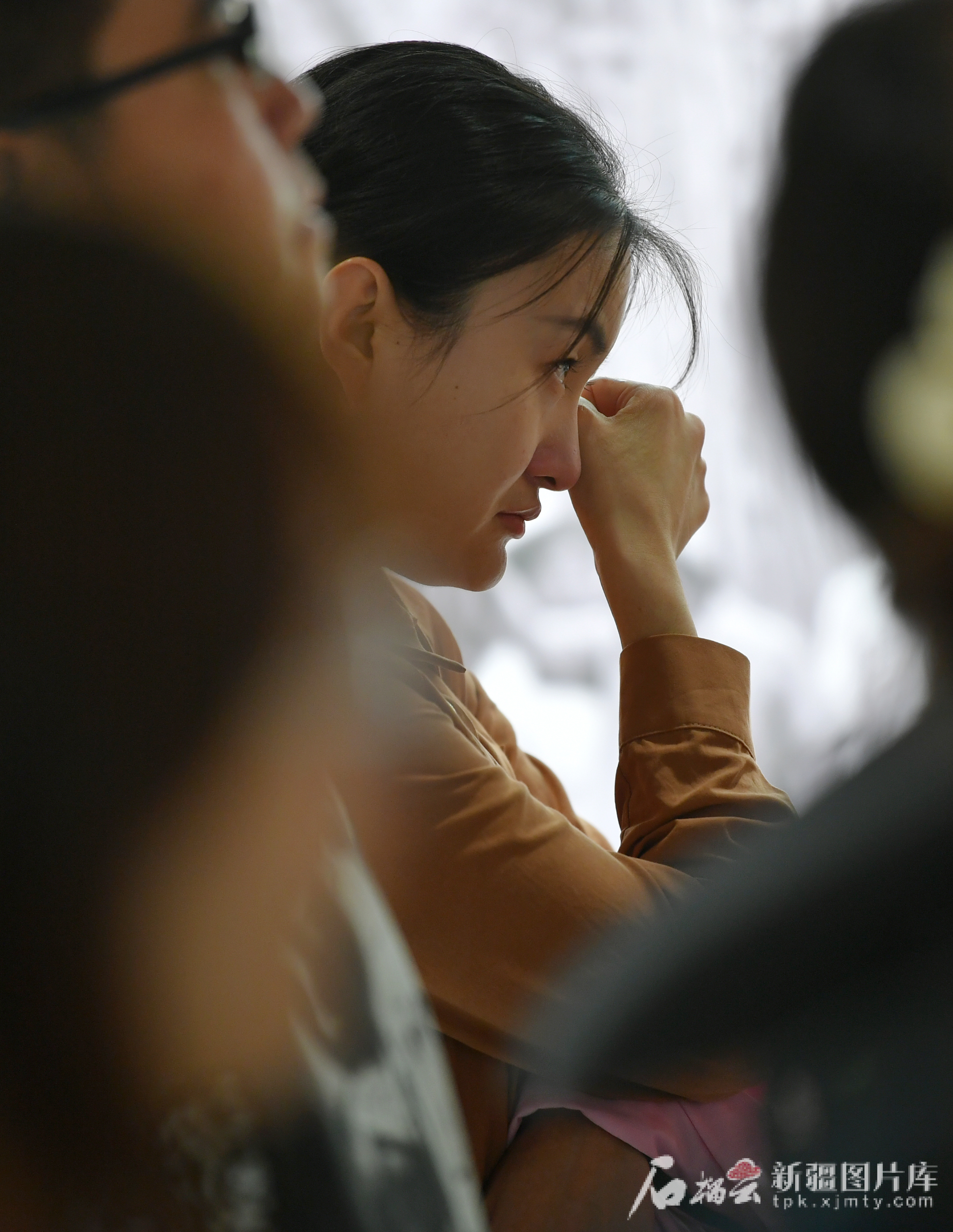 8月6日,采訪團成員在喀拉喀什河渠首愛國主義教育基地參觀時流下熱淚。