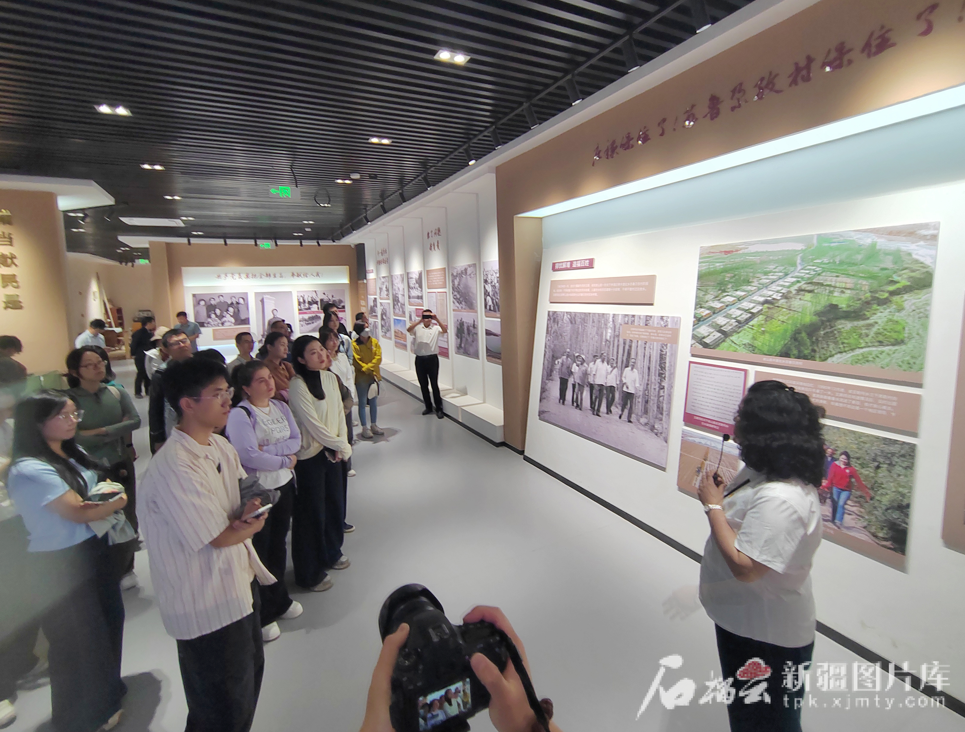 8月6日,采訪團成員在喀拉喀什河渠首愛國主義教育基地內(nèi)參觀。