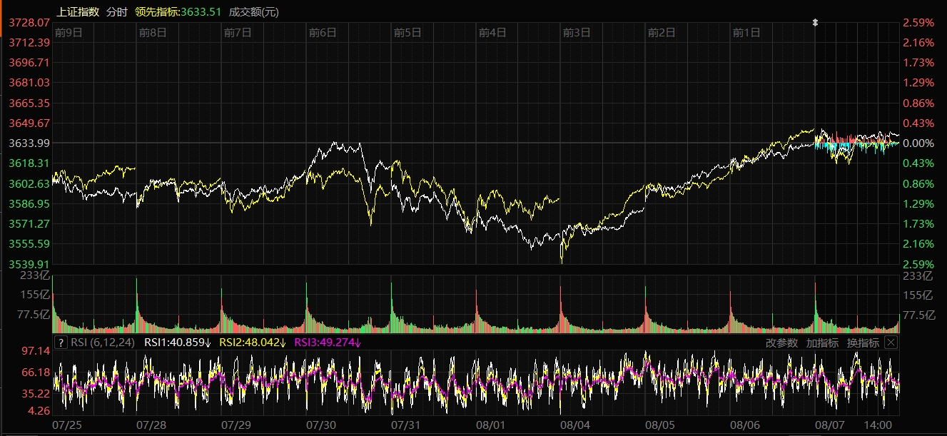 天山網(wǎng)-新疆日?qǐng)?bào)訊(記者趙悅報(bào)道)8月7日,A股三大指數(shù)漲跌不一,上證指數(shù)創(chuàng)今年以來(lái)新高。截至收盤,上證指數(shù)漲0.16%,報(bào)收3639.67點(diǎn);深證成指跌0.18%,報(bào)收11157.94點(diǎn);創(chuàng)業(yè)板指跌0.68%,報(bào)收2342.86點(diǎn)。滬深兩市成交額達(dá)18255億元,較昨日放量914億元。
