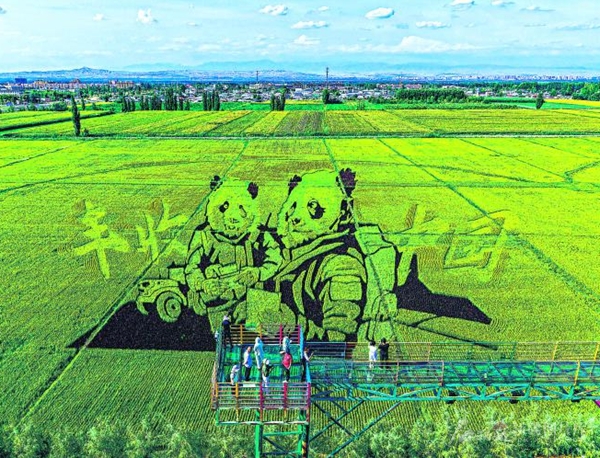 這些稻田畫都是北京科可瑞照明設計有限公司董事長高楓創(chuàng)作的。為了能夠給游客呈現(xiàn)出更美的稻田畫,他選用了6種不同品種、不同顏色的稻種,還在“稻光謠”景區(qū)設計了燈光秀、觀光小火車、特色農(nóng)副產(chǎn)品銷售展位等業(yè)態(tài),增強了游客體驗感。