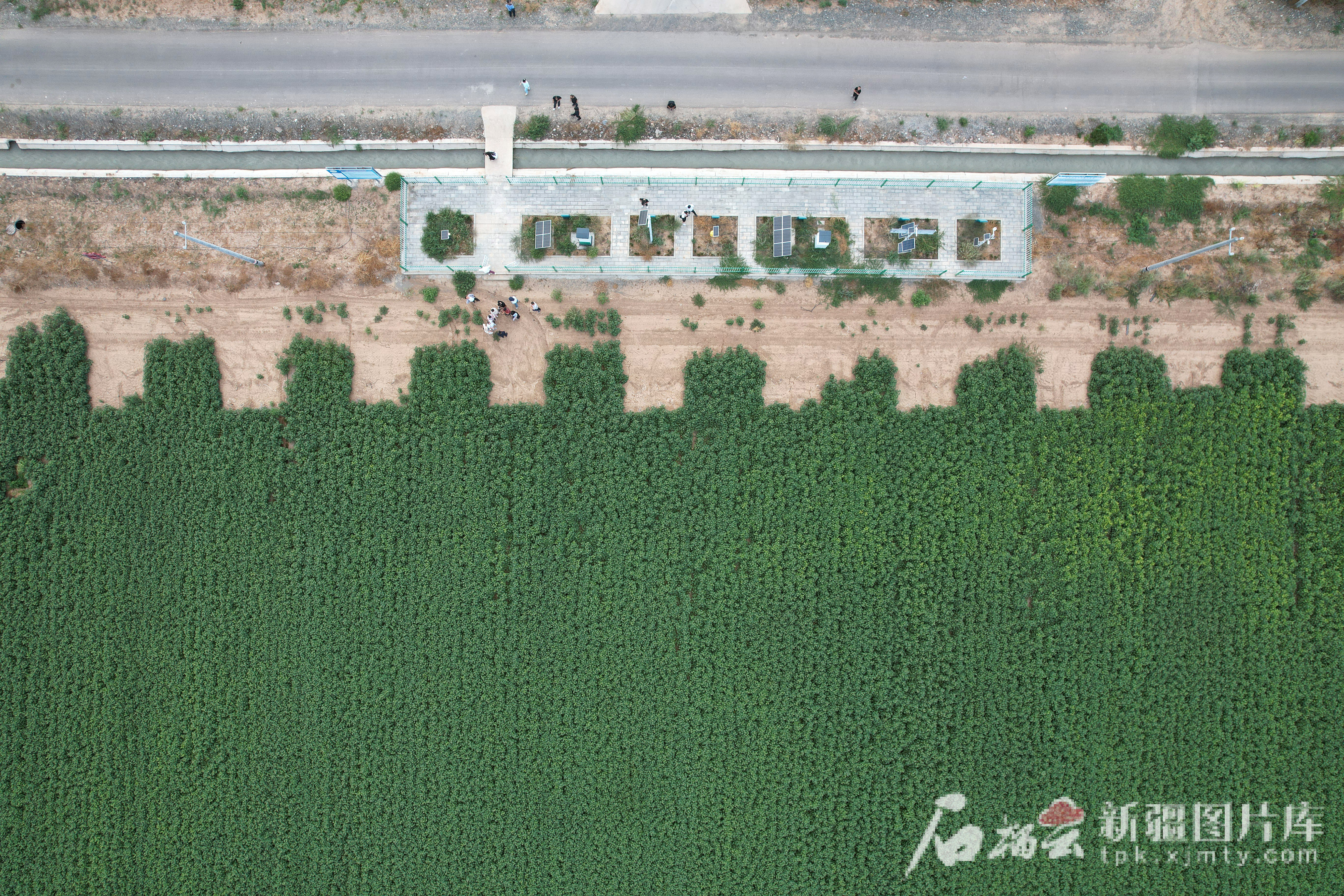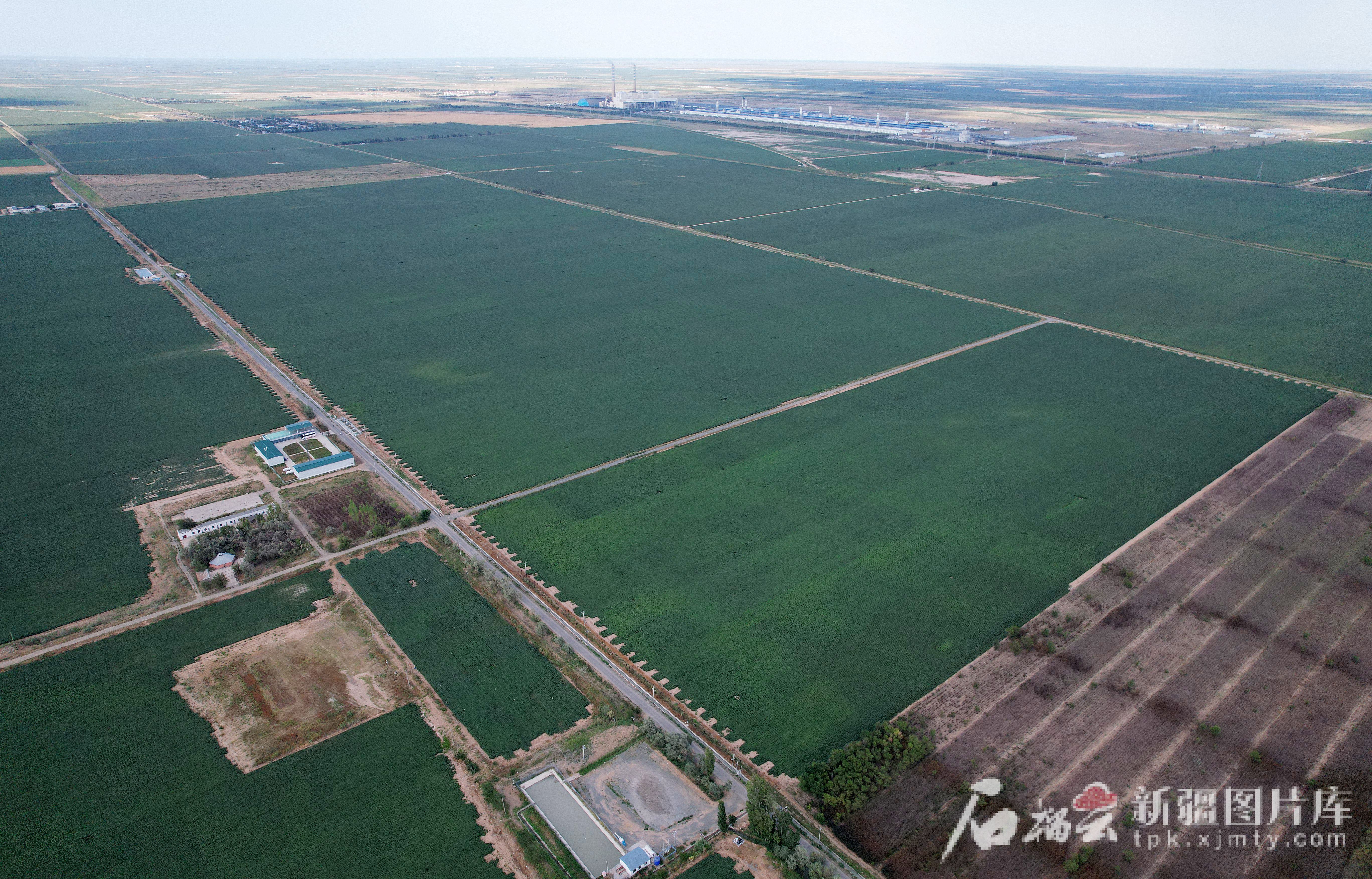 8月10日,俯瞰瑪納斯縣包家店鎮(zhèn)棉花長勢良好的高標(biāo)準(zhǔn)農(nóng)田。