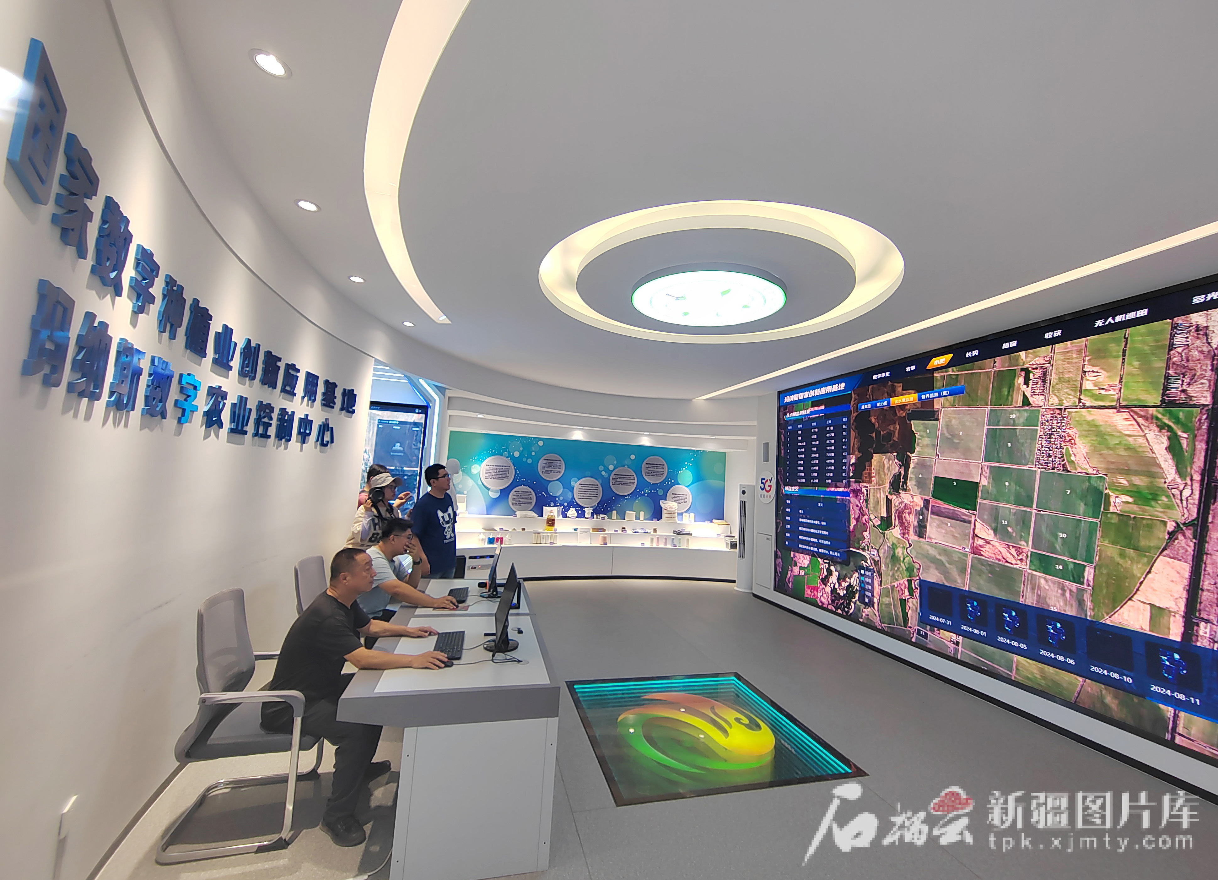 8月10日,工作人員為采訪團(tuán)成員展示國家數(shù)字種植業(yè)創(chuàng)新應(yīng)用基地管理平臺(tái)瑪納斯數(shù)字農(nóng)業(yè)控制中心。
