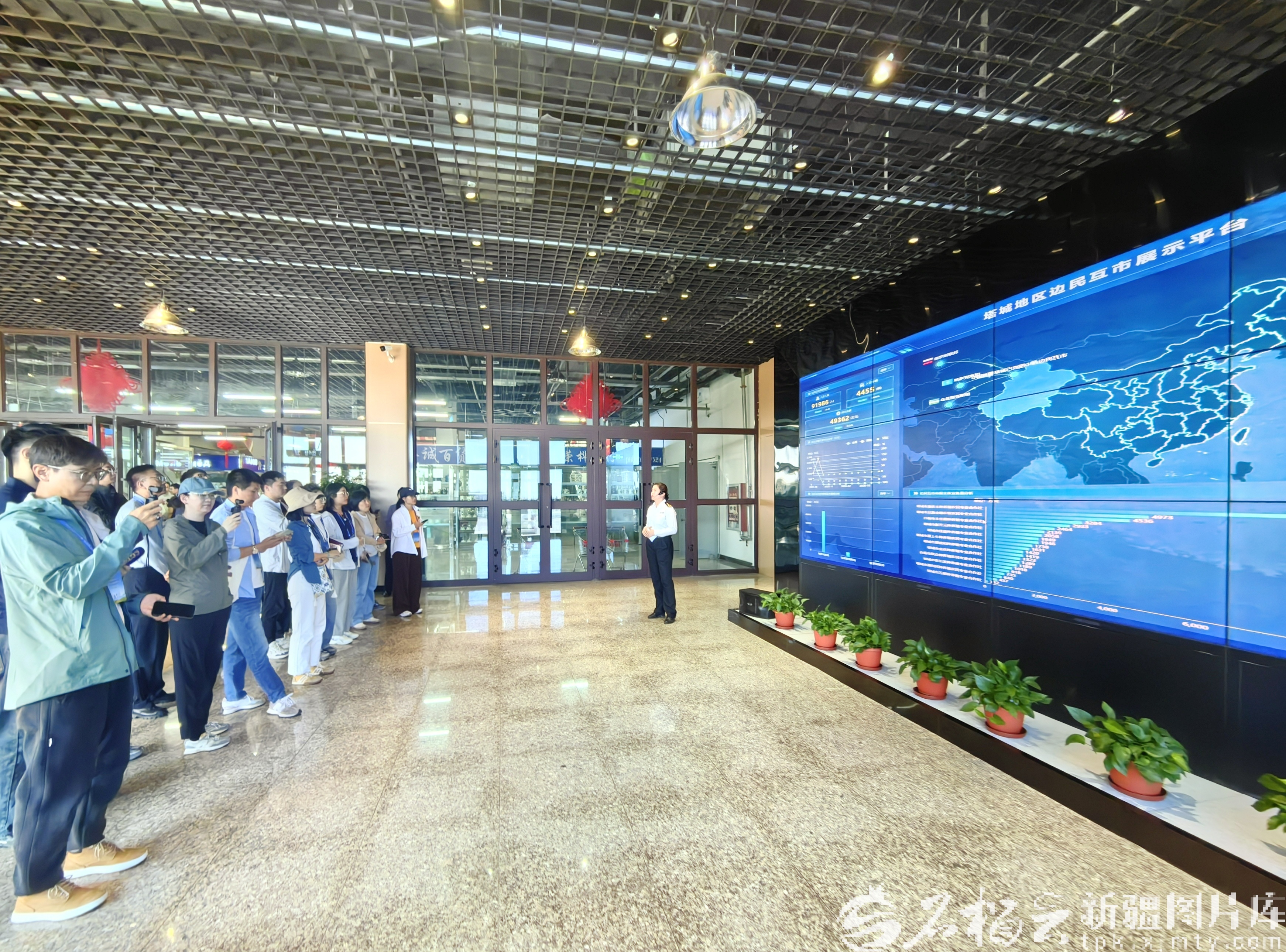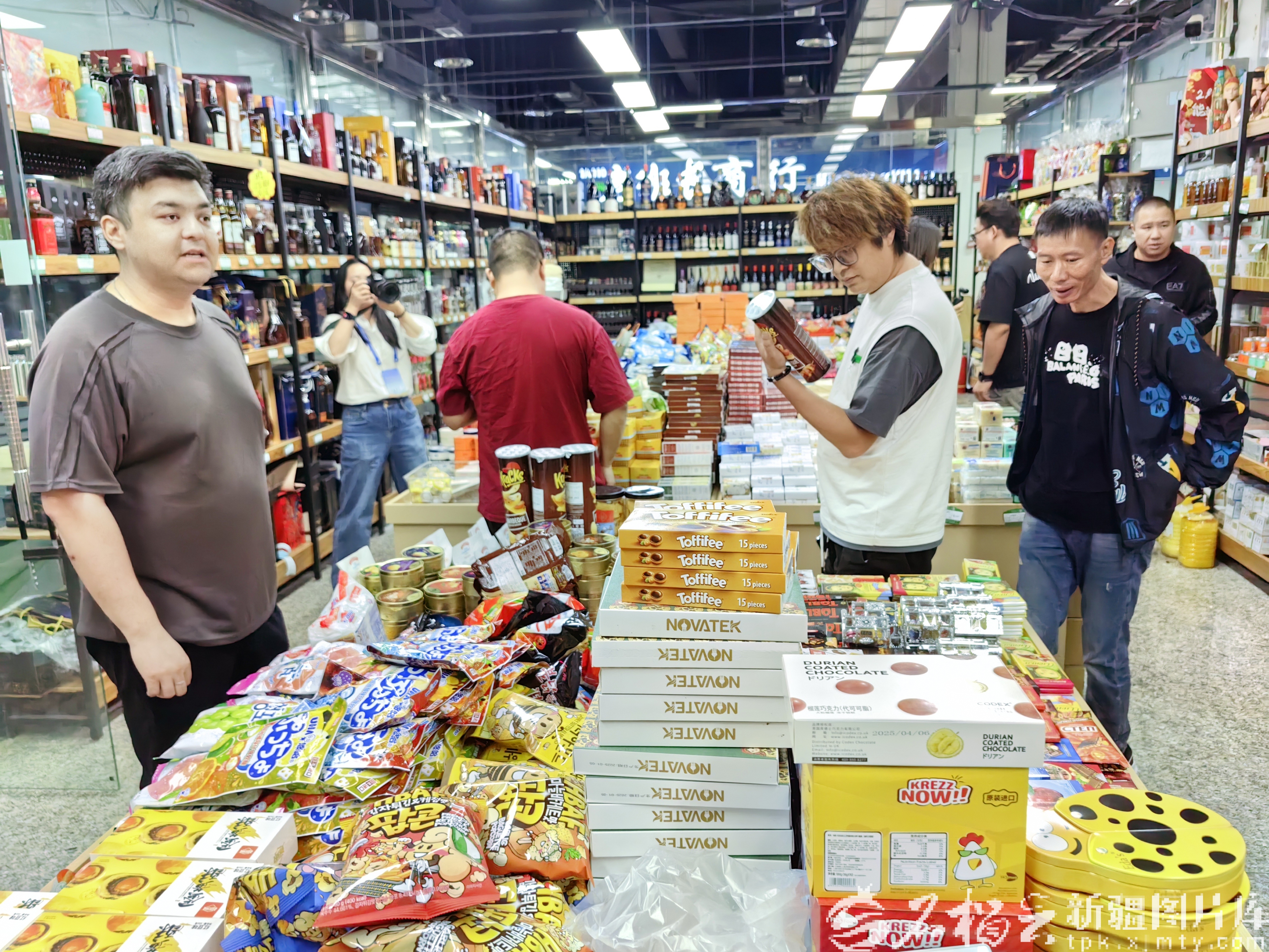9月12日,采訪團(tuán)成員在巴克圖口岸中哈邊民互市絲路文化商品城采訪。