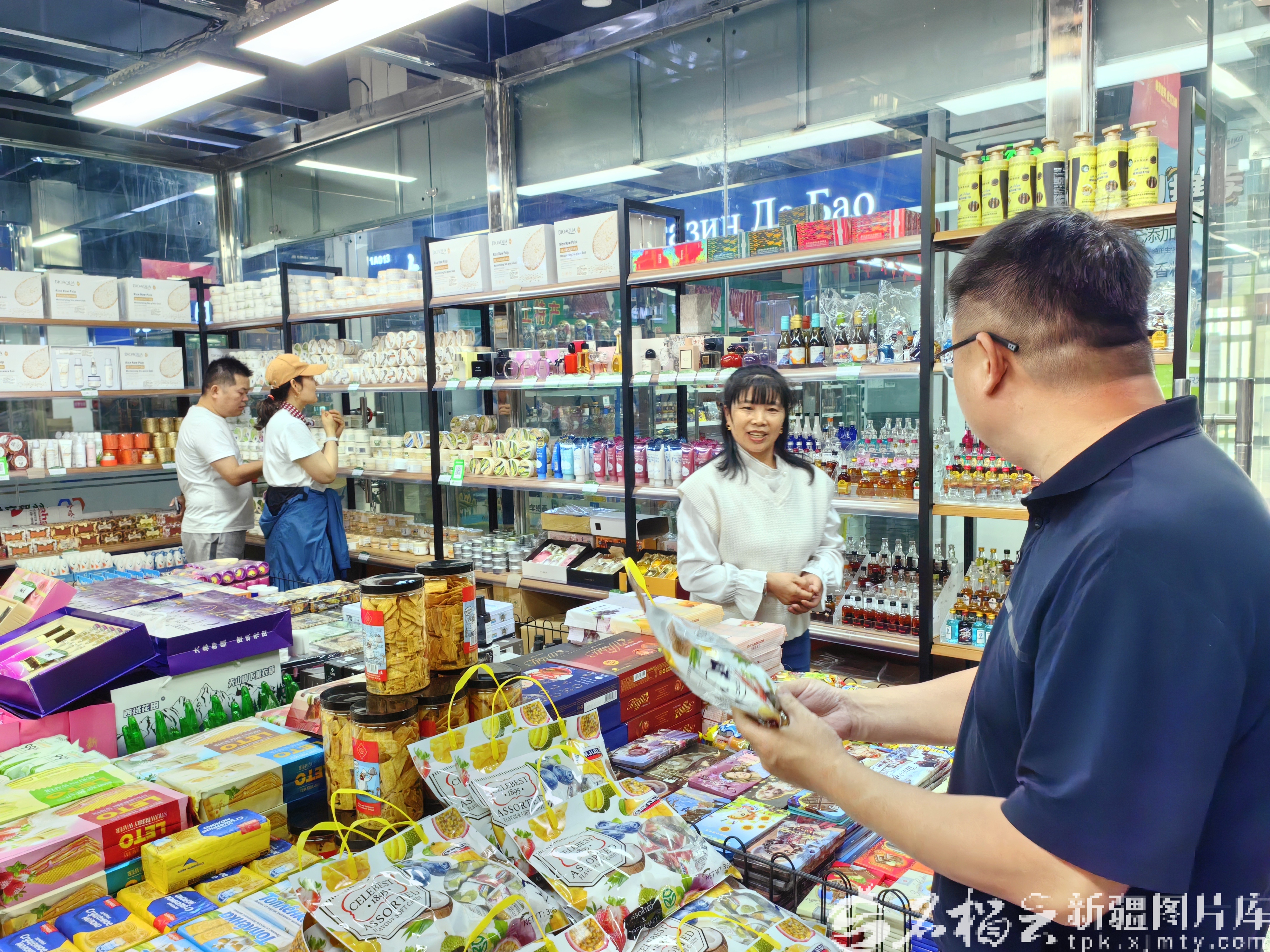 9月12日,游客在巴克圖口岸中哈邊民互市絲路文化商品城內(nèi)選購商品。