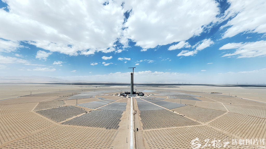 2025年7月1日,中電建若羌光熱電站項目高、低溫熔鹽罐本體順利封頂。圖/若羌縣融媒體中心提供