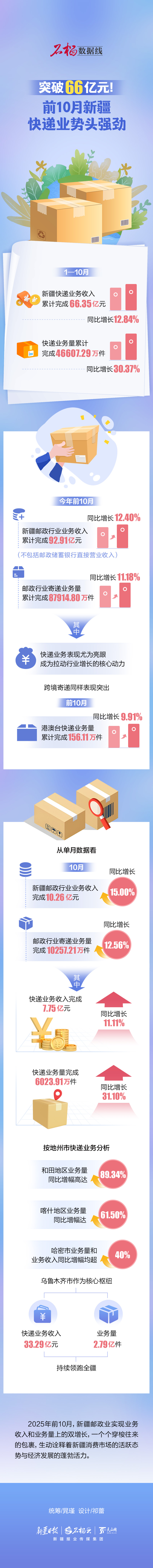 石榴數(shù)據(jù)線丨突破66億元!前10月新疆快遞業(yè)勢頭強勁