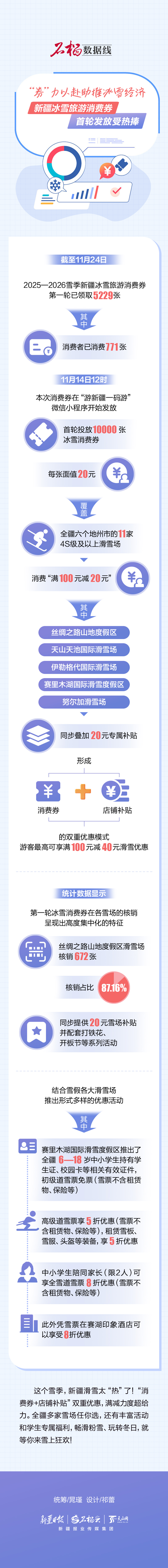 截至11月24日,2025—2026雪季新疆冰雪旅游消費(fèi)券第一輪已領(lǐng)取5229張,其中消費(fèi)者已消費(fèi)771張。
