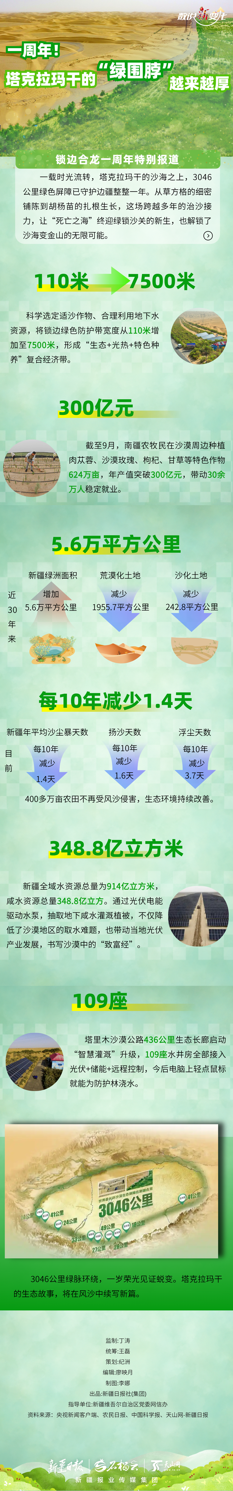 鎖邊合龍一周年·數(shù)說“新”變化丨一周年!塔克拉瑪干的“綠圍脖”越來越厚