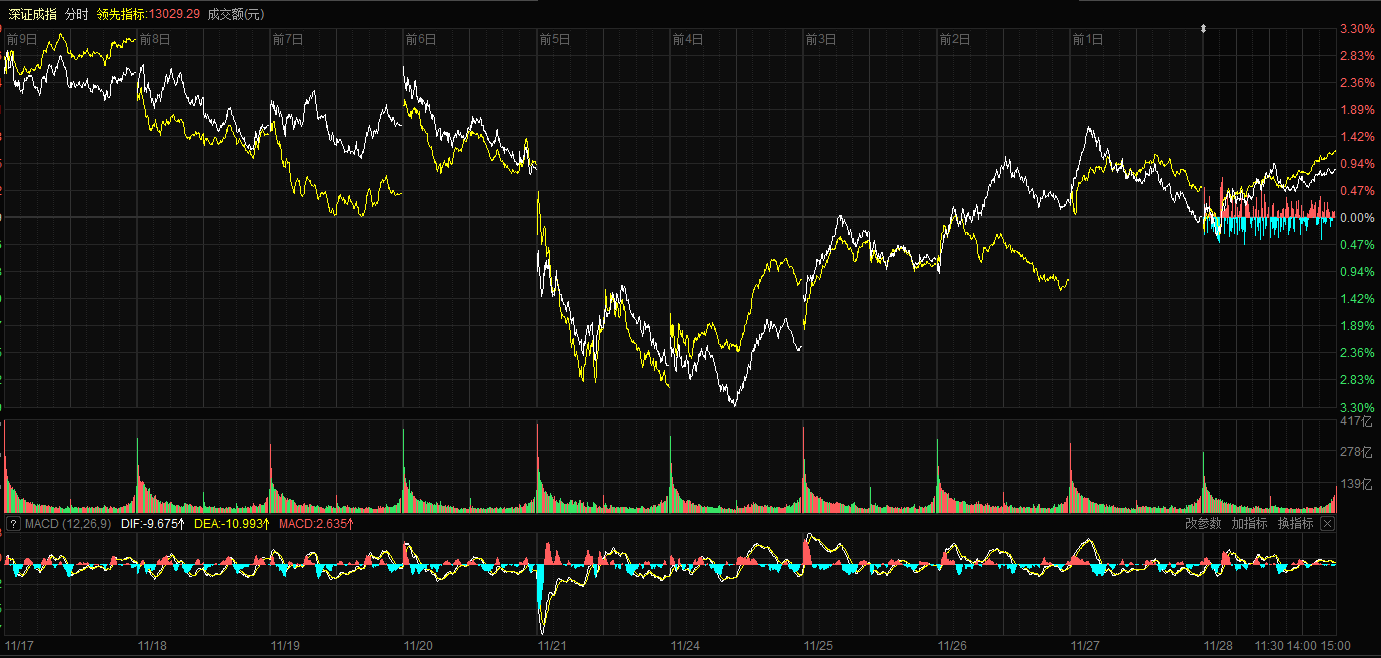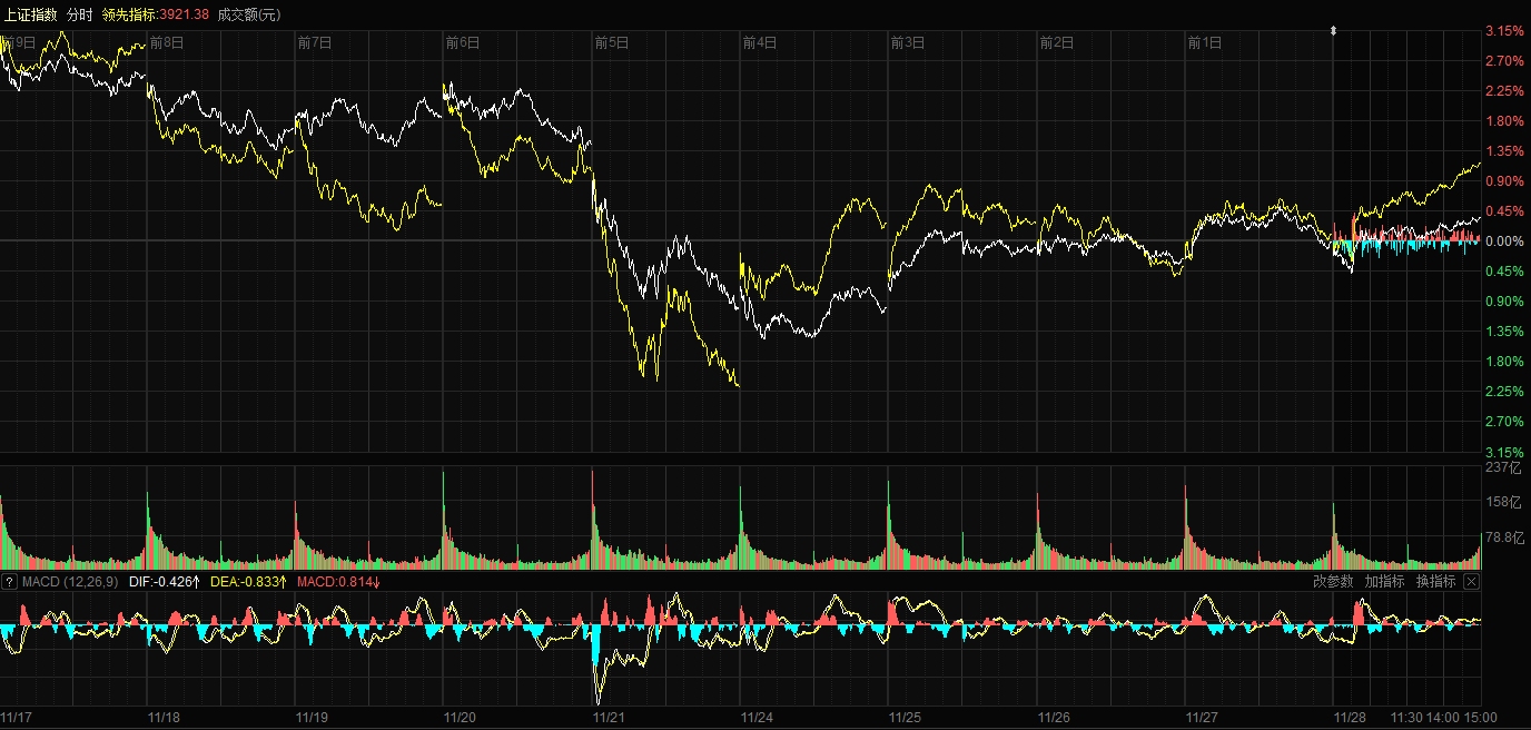 天山網(wǎng)-新疆日報訊(記者康顥嚴(yán)報道)11月28日,A股三大指數(shù)集體上漲。截至收盤,滬指漲0.34%,報收3888.60點;深證成指漲0.85%,報收12984.08點;創(chuàng)業(yè)板指漲0.70%,報收3052.59點。滬深兩市成交額15858億元,較昨日縮量1240億元。