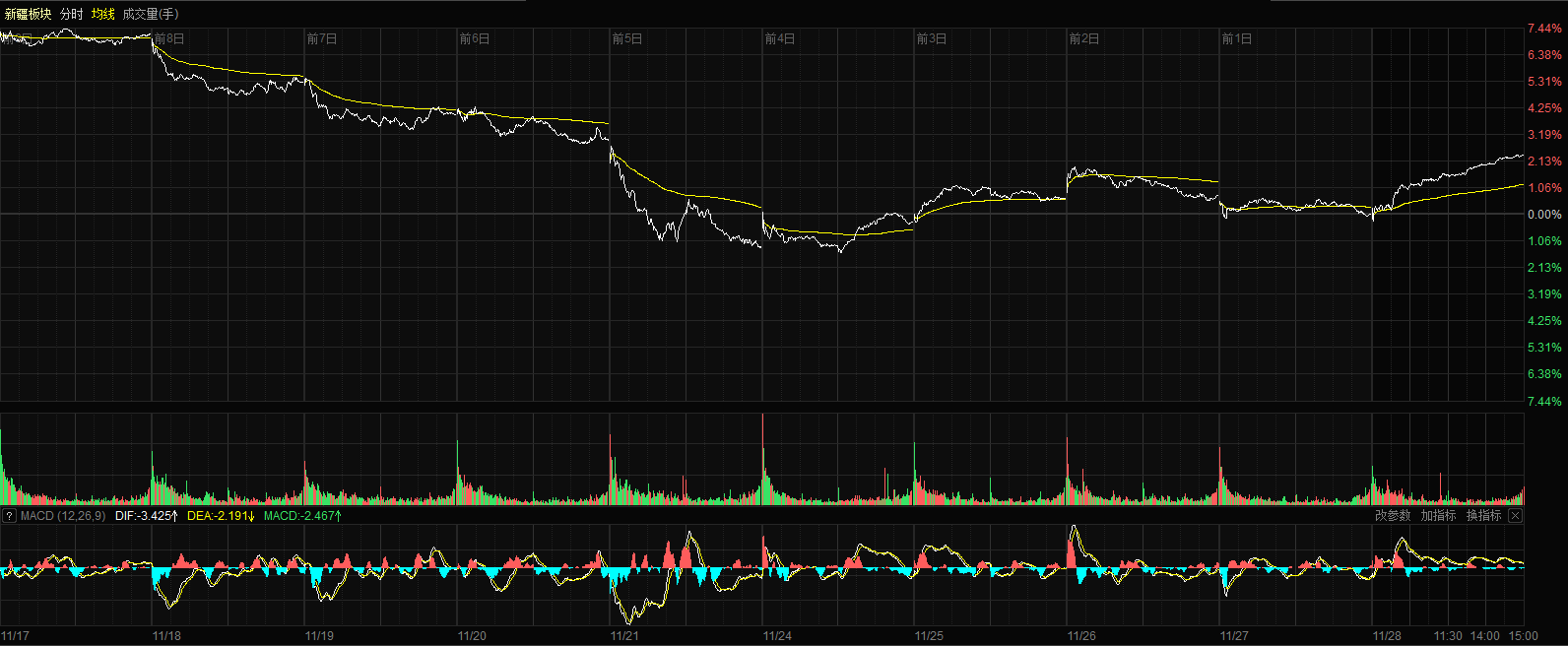 11月28日收盤時,新疆板塊指數(shù)漲2.38%,報收22225.32點,58只股票上漲,3只股票下跌,個股上漲比例為95.00%,總換手率1.46%,總成交額157.38億元。