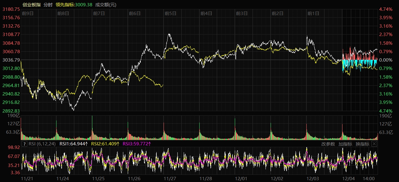 天山網-新疆日報訊(記者趙悅報道)12月4日,A股三大指數漲跌不一。截至收盤,滬指跌0.06%,報收3875.79點;深證成指漲0.40%,報收13006.72點;創(chuàng)業(yè)板指漲1.01%,報收3067.48點。滬深兩市成交額15490億元,較昨日縮量1210億元。