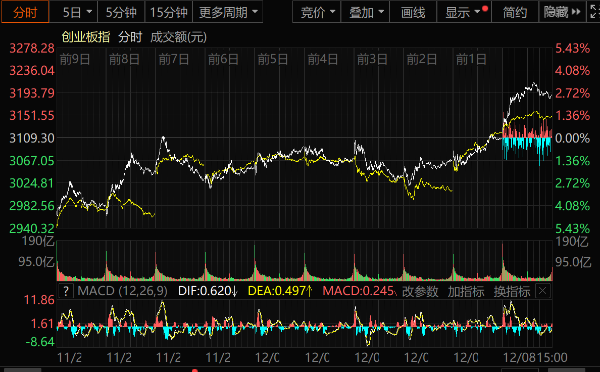 創(chuàng)業(yè)板指數(shù)近十日變化趨勢(來源:東方財富)。