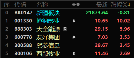12月9日新疆板塊股價(jià)漲幅排名(來(lái)源:東方財(cái)富)。