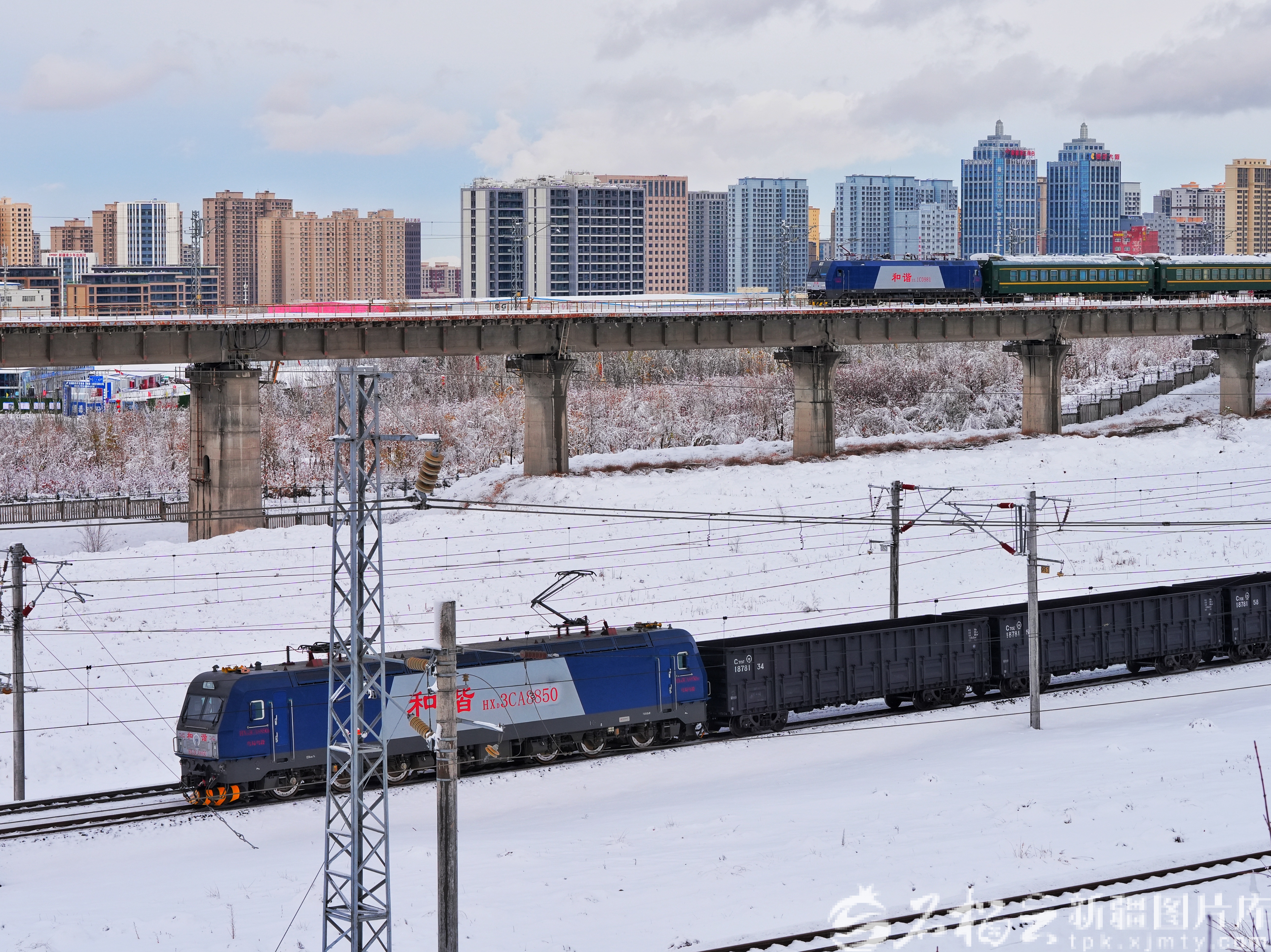 12月8日,一列煤炭專列緩緩駛出烏魯木齊站。擺風(fēng)亮 攝