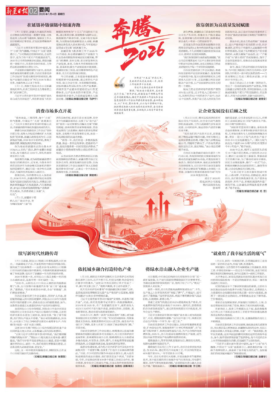 習(xí)近平總書記在新年賀詞中強(qiáng)調(diào),“銳始者必圖其終,成功者先計(jì)于始?!毙履暌潦?,新疆各族干部群眾牢記總書記殷殷囑托,錨定中央經(jīng)濟(jì)工作會(huì)議和自治區(qū)黨委經(jīng)濟(jì)工作會(huì)議部署的目標(biāo)任務(wù),在田間地頭、工廠車間、繁忙街市,正以馬不停蹄的干勁,把拼搏進(jìn)取融入欣欣向榮的美麗場(chǎng)景,奮力推動(dòng)經(jīng)濟(jì)社會(huì)高質(zhì)量發(fā)展,在新起點(diǎn)上續(xù)寫中國(guó)奇跡新疆篇章。