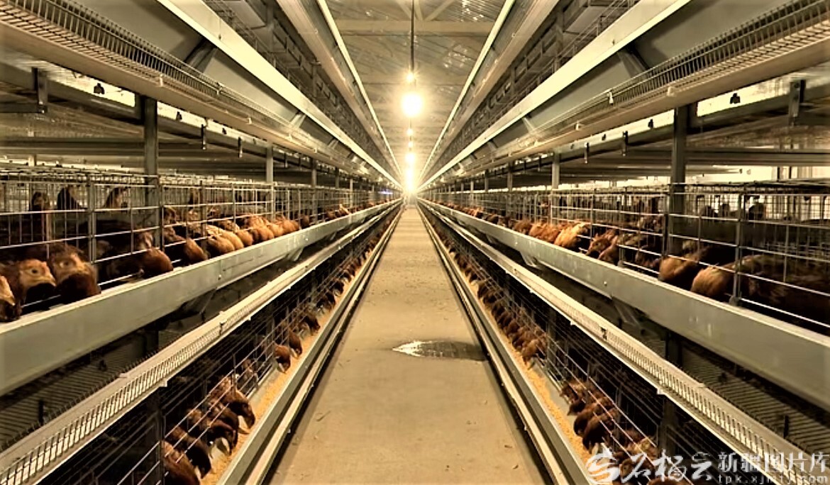 1月21日,奇臺縣科禽禾蛋雞養(yǎng)殖有限公司智能化養(yǎng)雞場,一排排雞籠整齊排列。謝甜 攝