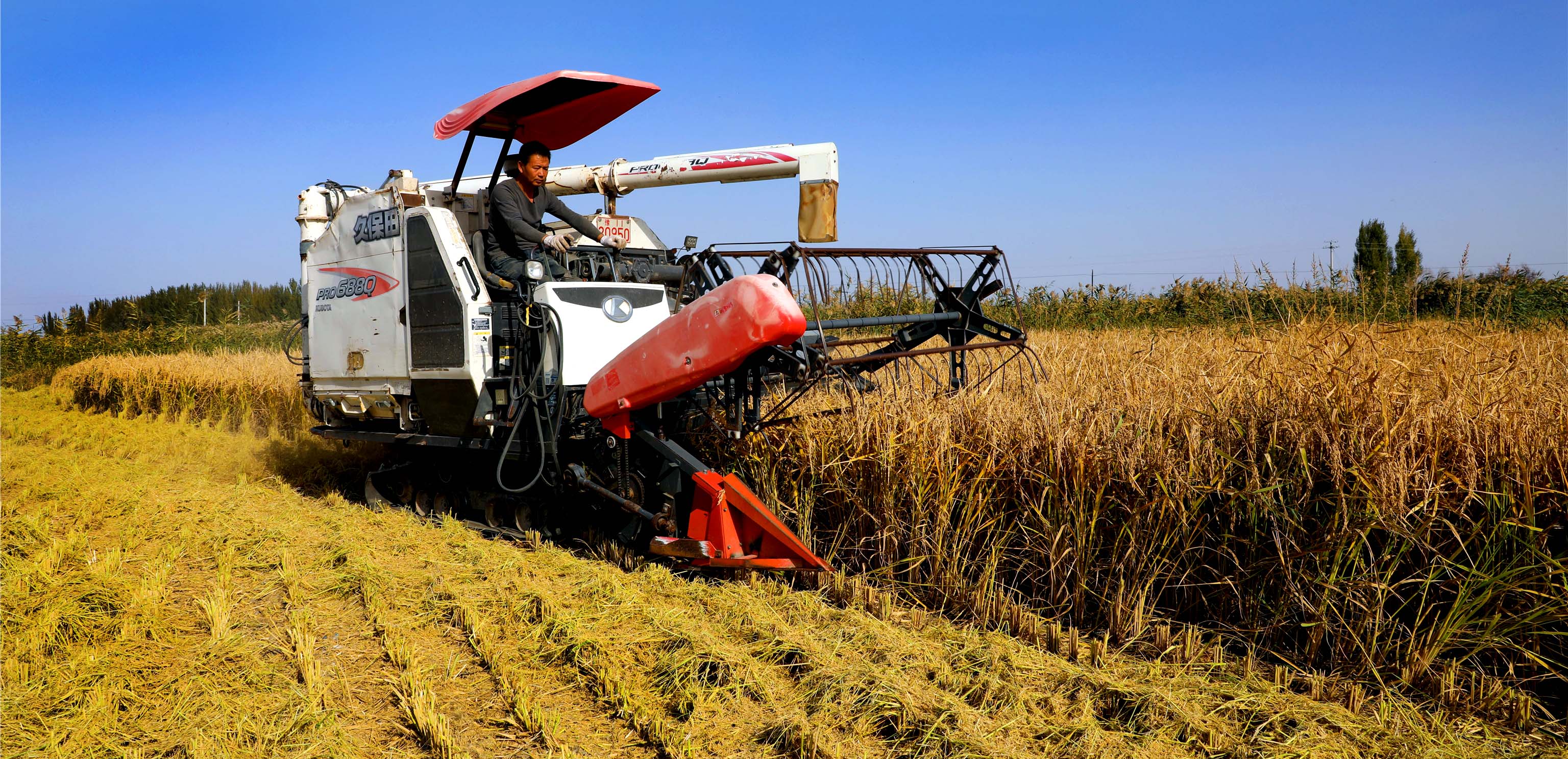 察布查爾錫伯自治縣綽霍爾鎮(zhèn)博孜墩村水稻種植基地收割現(xiàn)場。薛強 攝
