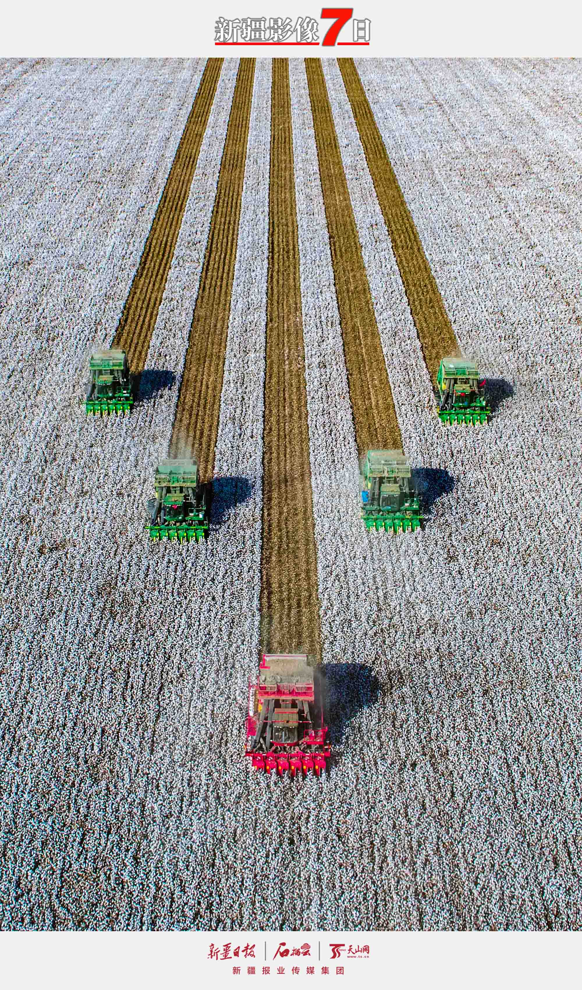 2022年10月7日,采棉機在昌吉棉田里作業(yè)。何龍 攝