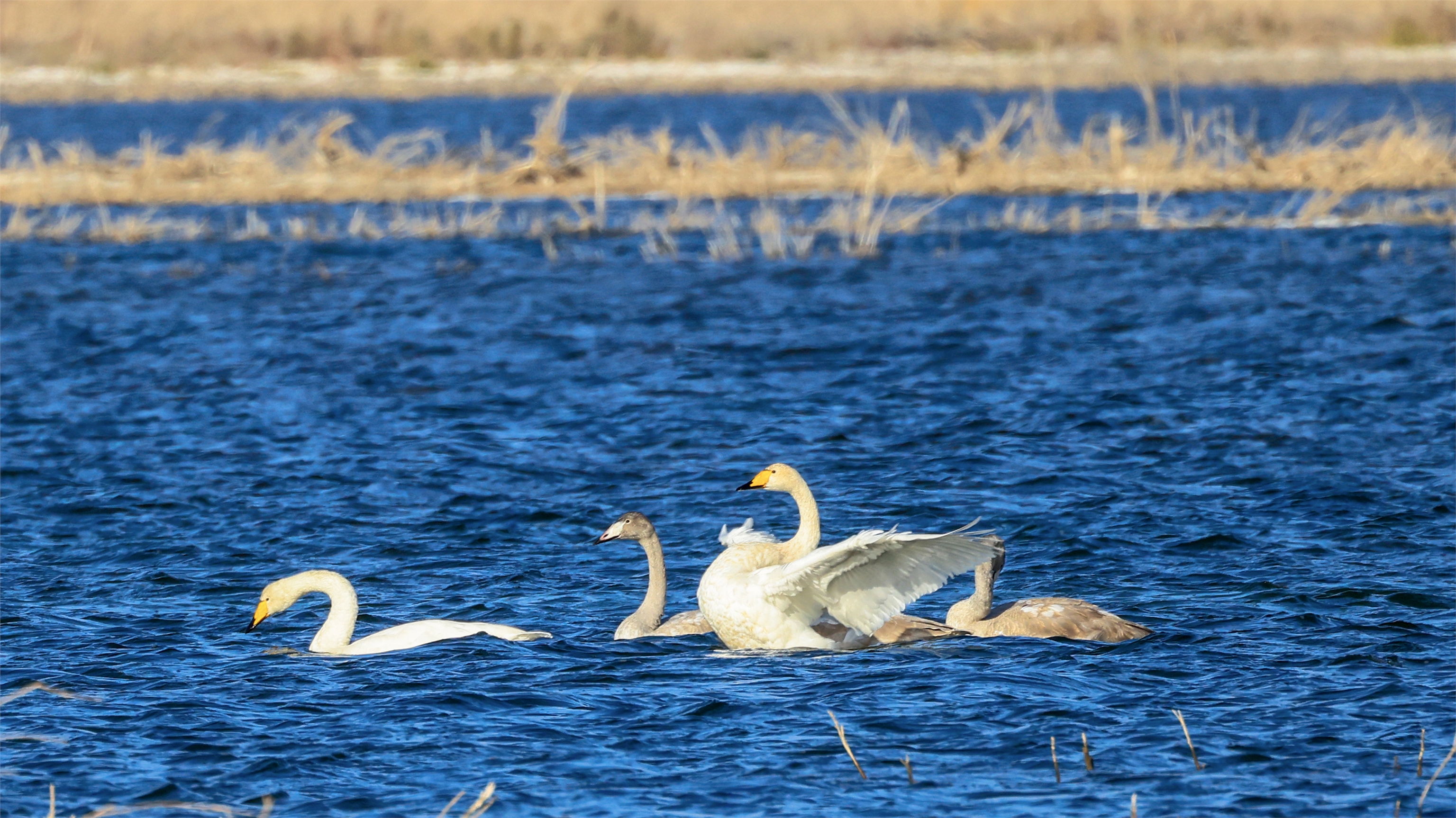 2022年11月14日,位于博湖縣境內(nèi)的博斯騰湖白鷺洲迎來大批天鵝。年磊攝