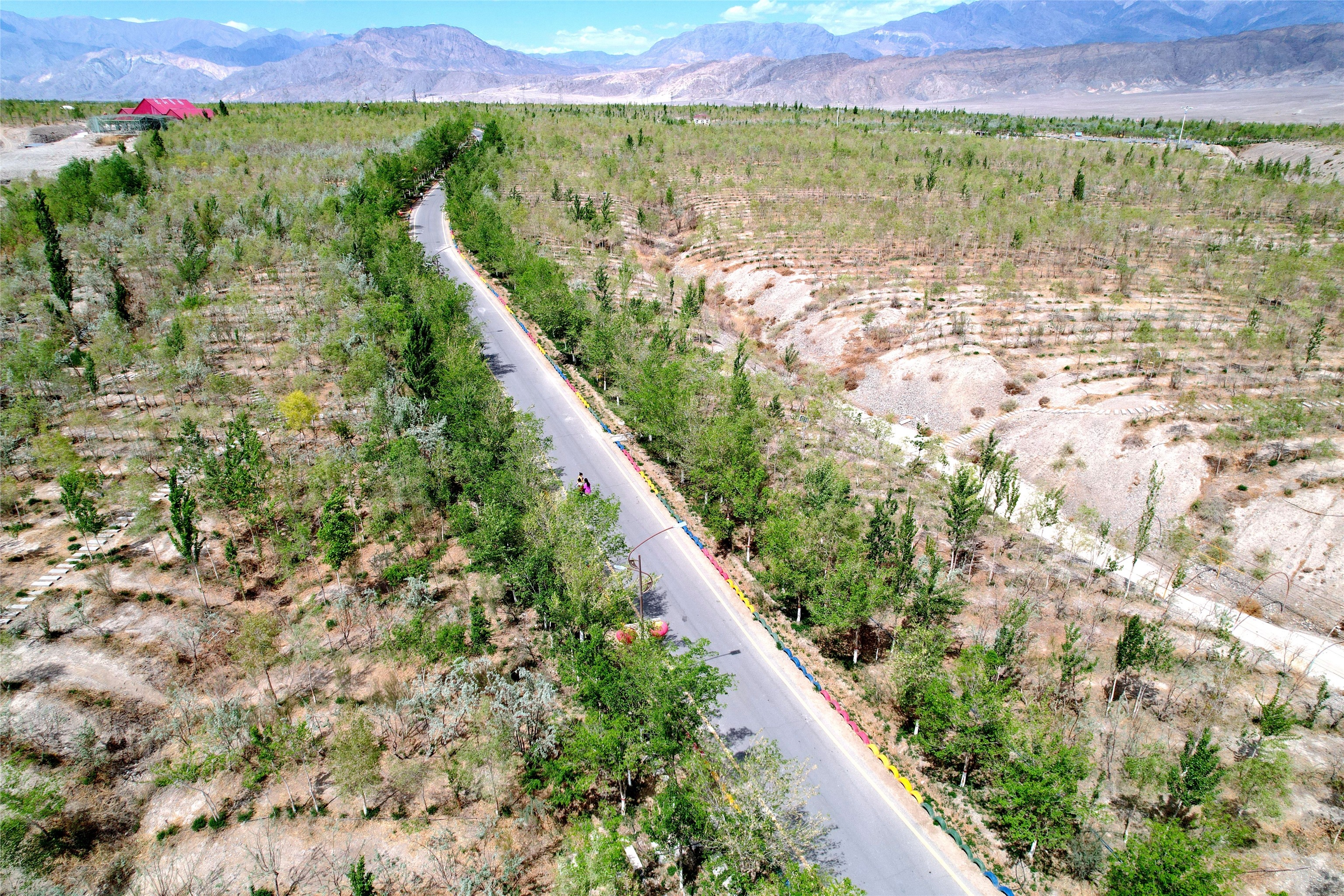 航拍和靜縣北山森林公園(2022年4月23日無人機拍攝)。2022年2013年以來,和靜縣啟動北山綠化工程,在戈壁荒灘上筑起了一道2.5萬畝的森林綠色屏障,并設(shè)置了生態(tài)林果采摘園、旅游觀光園、生態(tài)休閑園等休閑場地,把昔日的戈壁荒山,變成了綠水青山的旅游觀光地。謝江林攝