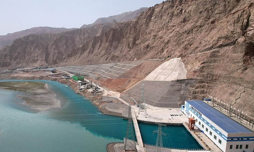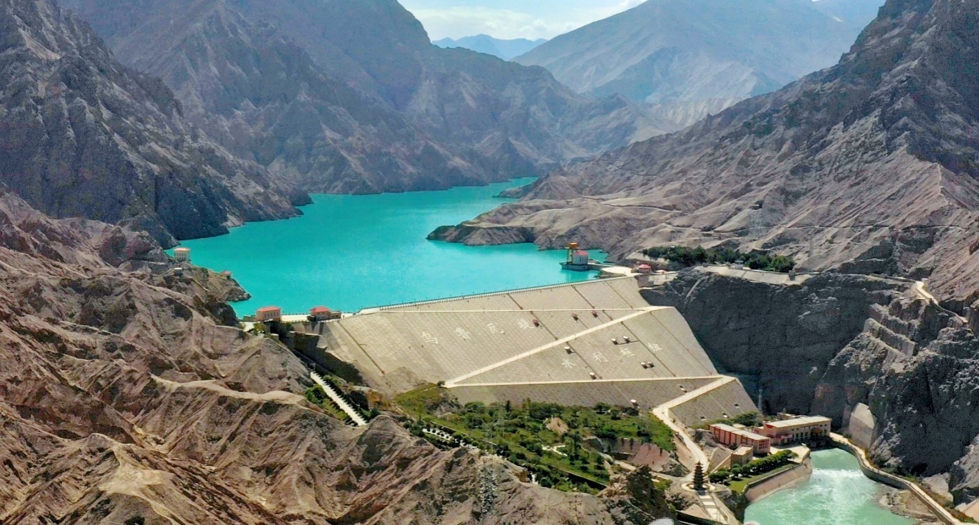 阿爾塔什水利樞紐工程(無人機航拍畫面)。阿布力克木·阿布拉攝