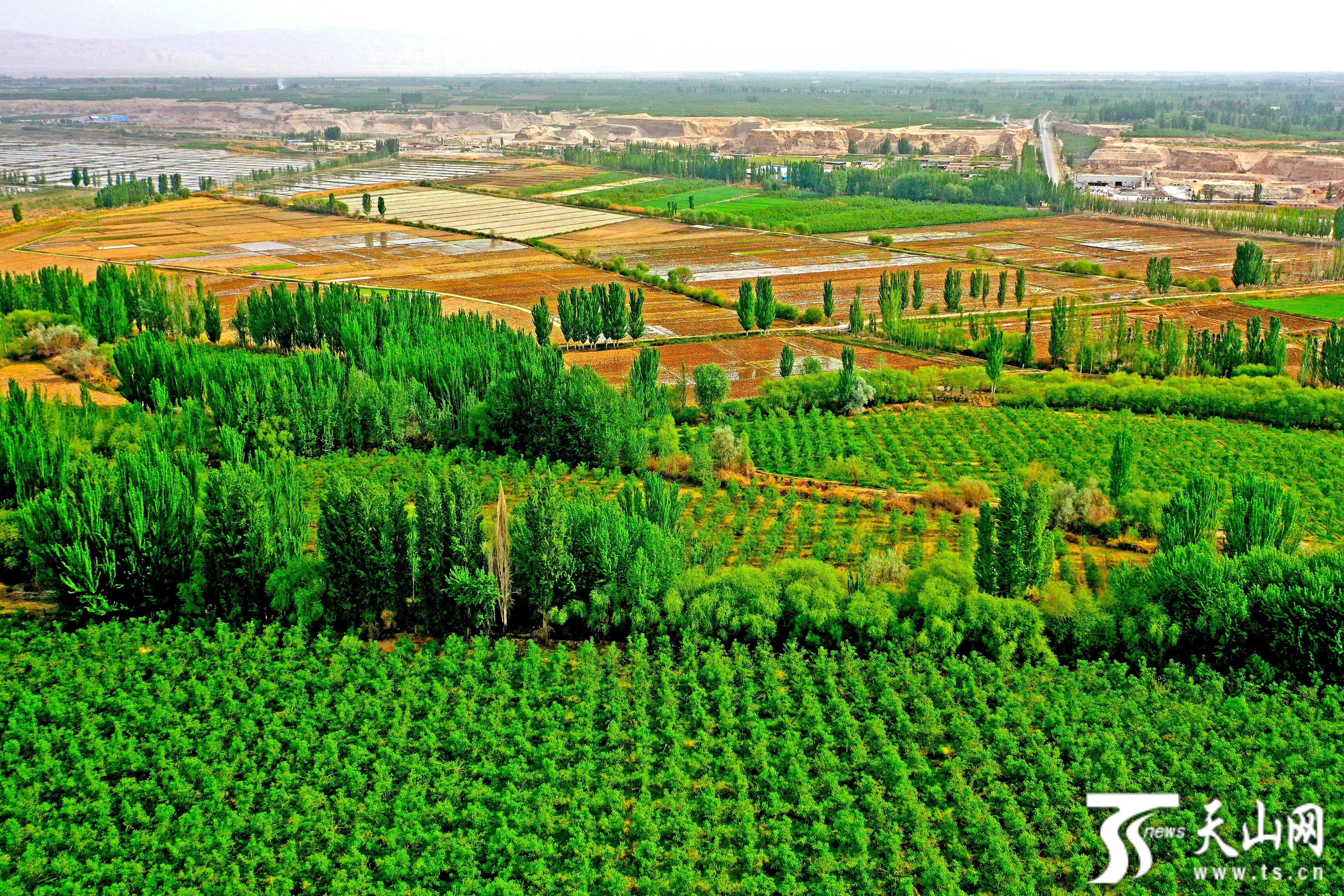 俯瞰溫宿縣柯柯牙鎮(zhèn)柯柯牙綠化工程(無人機(jī)拍攝)。天山網(wǎng)-新疆日報記者蔡增樂攝