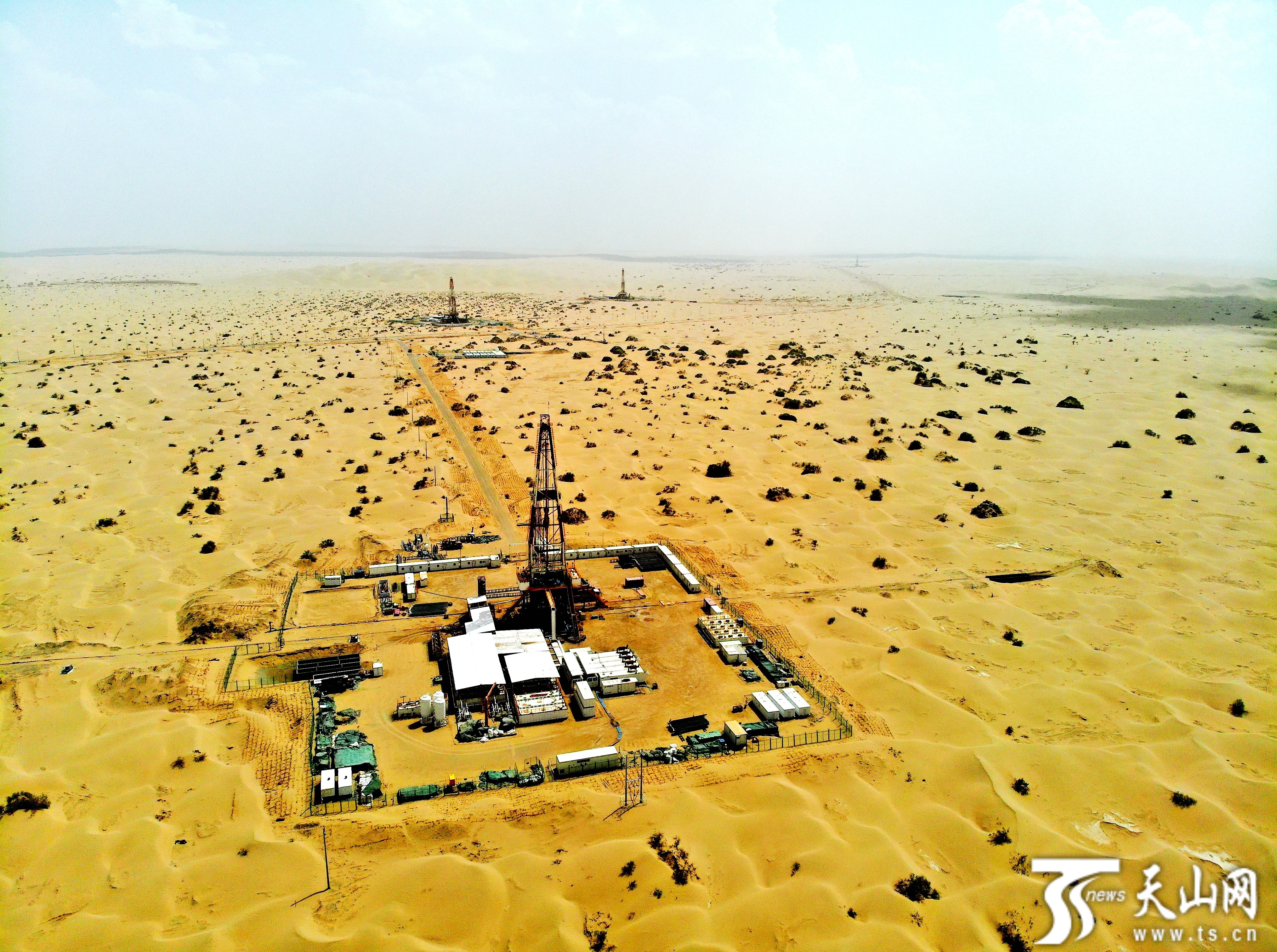 位于塔克拉瑪干沙漠腹地的富滿油田鉆機(jī)林立。塔里木油田供圖