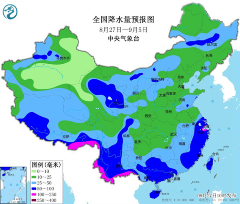 8月27日—9月5日全國降水量預(yù)報圖。來源:中國天氣網(wǎng)