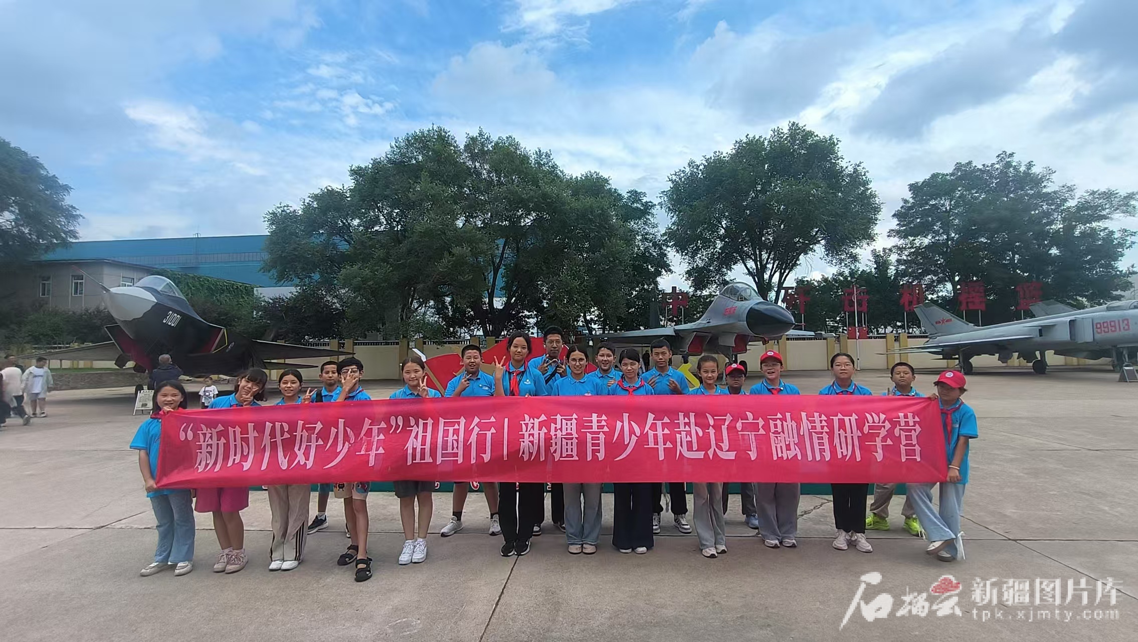7月13日,新疆“新時(shí)代好少年”在沈飛航空博覽園合影。王新攝