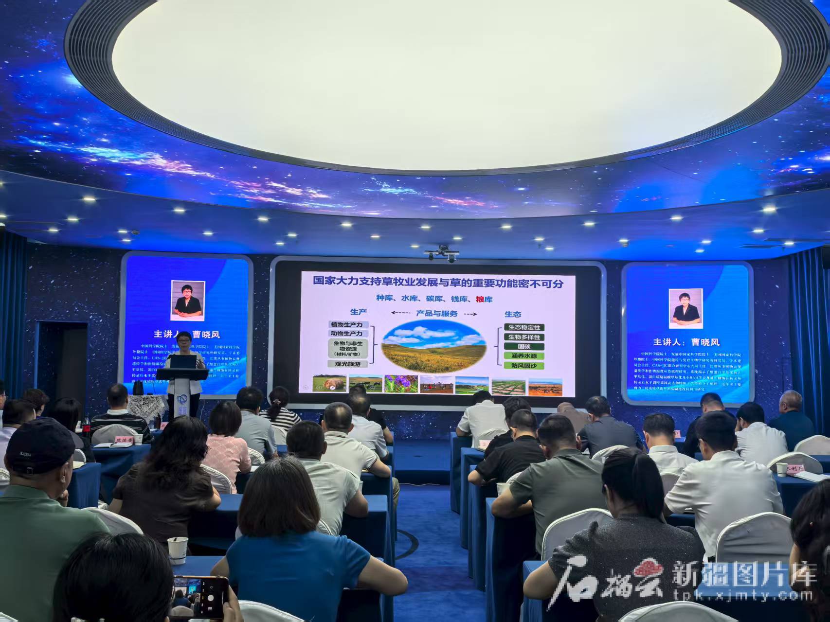 當(dāng)日,曹曉風(fēng)院士以“耐鹽堿豆科飼草與鹽堿地改良”為題,為自治區(qū)相關(guān)單位領(lǐng)導(dǎo)干部及技術(shù)骨干作專題報告,為新疆鹽堿地治理與飼草產(chǎn)業(yè)發(fā)展指明新路徑。