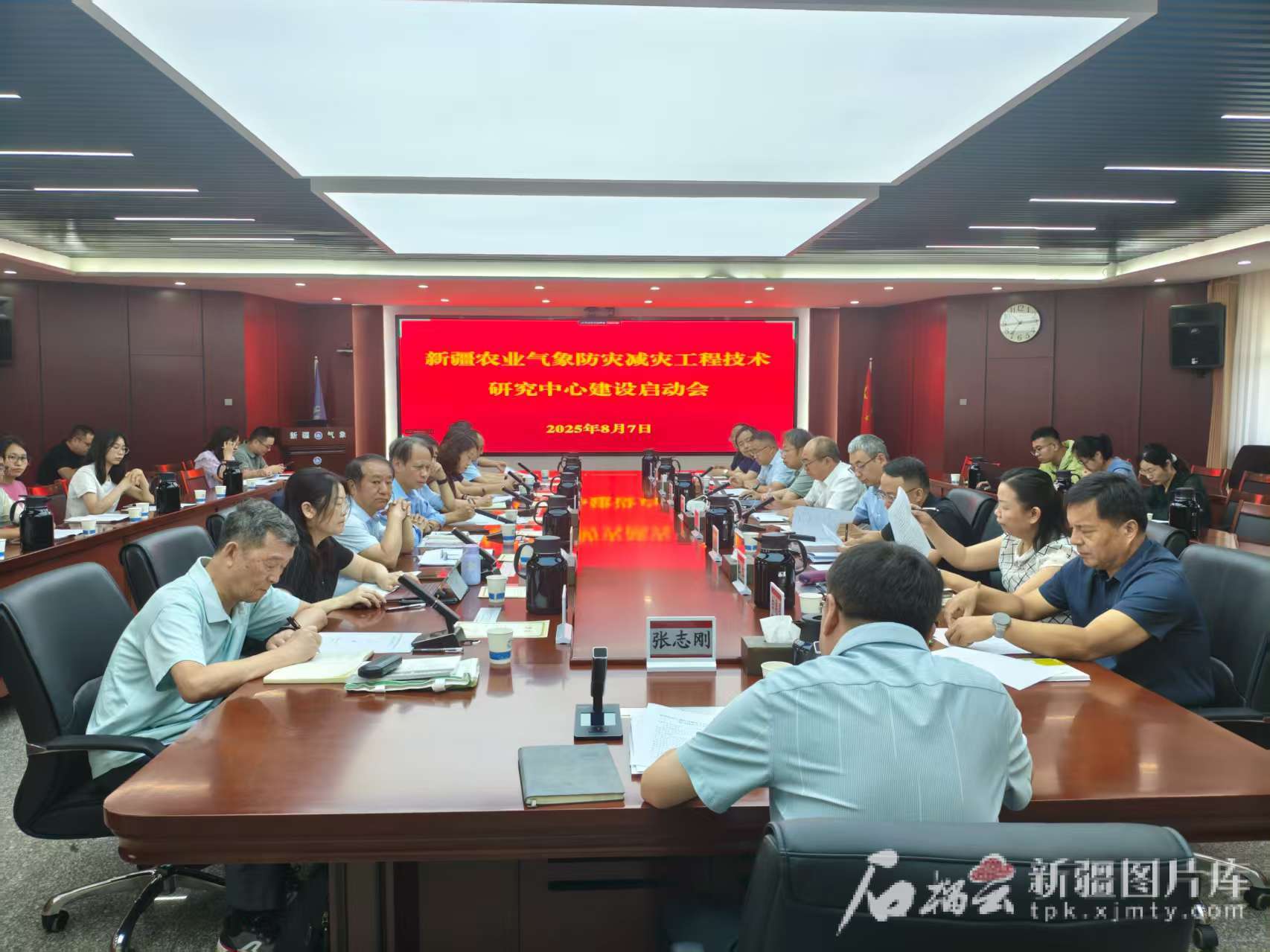 8月7日,新疆農(nóng)業(yè)氣象防災(zāi)減災(zāi)工程技術(shù)研究中心建設(shè)啟動(dòng)會(huì)暨學(xué)術(shù)交流會(huì)召開現(xiàn)場(chǎng)。圖/新疆農(nóng)業(yè)氣象臺(tái)提供