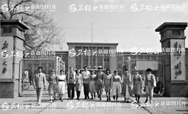 1977年,中斷了11年的高考招生制度重新恢復。這是部分77級學生在新疆大學校門前合影。圖片由新疆圖片庫提供