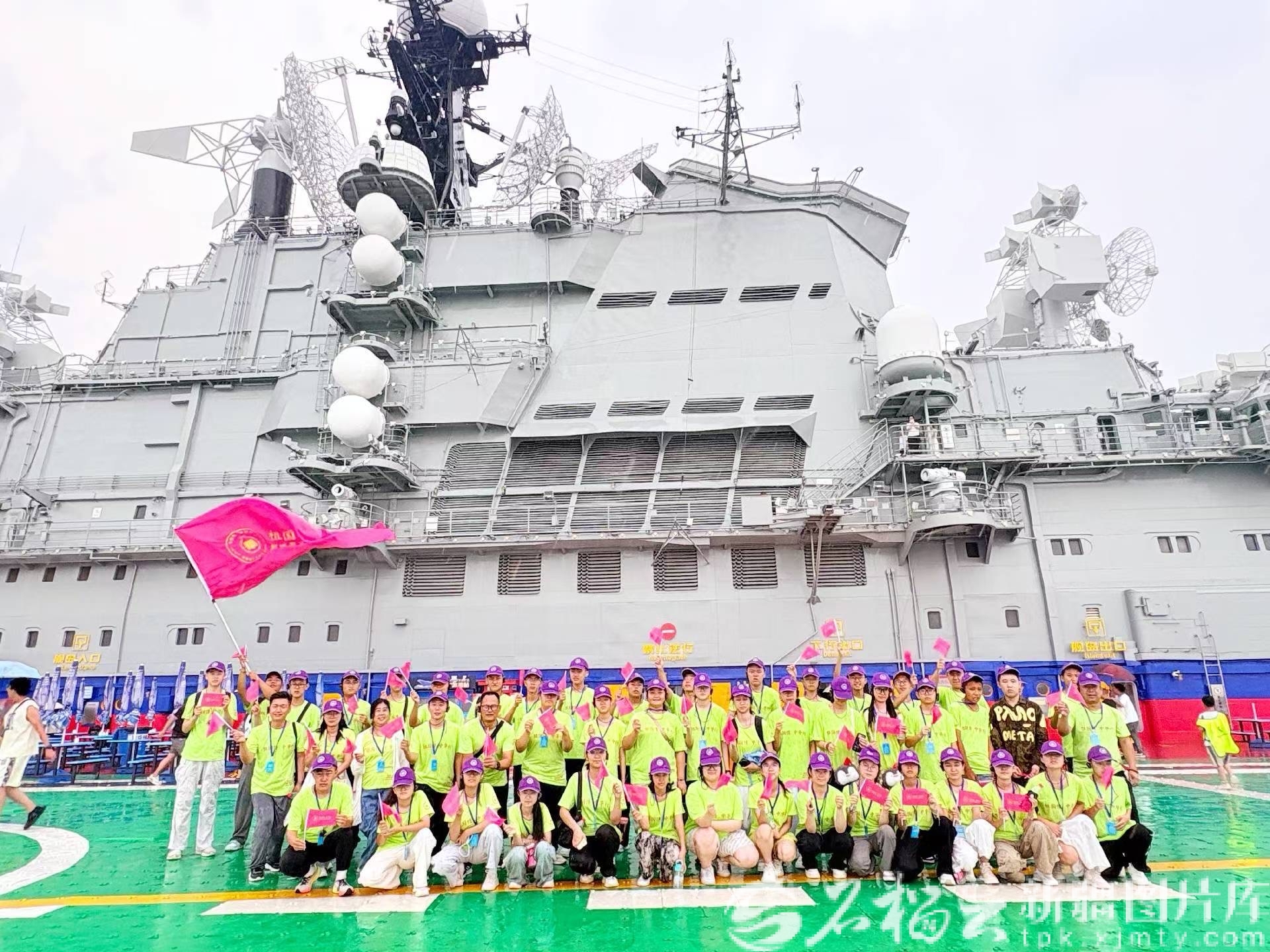 8月20日,天津泰達(dá)航母主題公園,昌吉回族自治州45名學(xué)生參觀留影。文權(quán) 攝