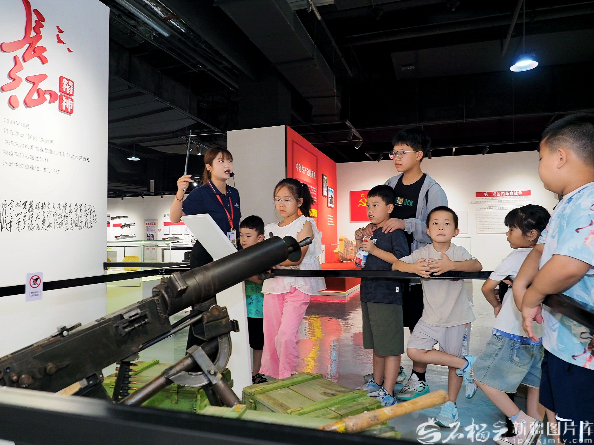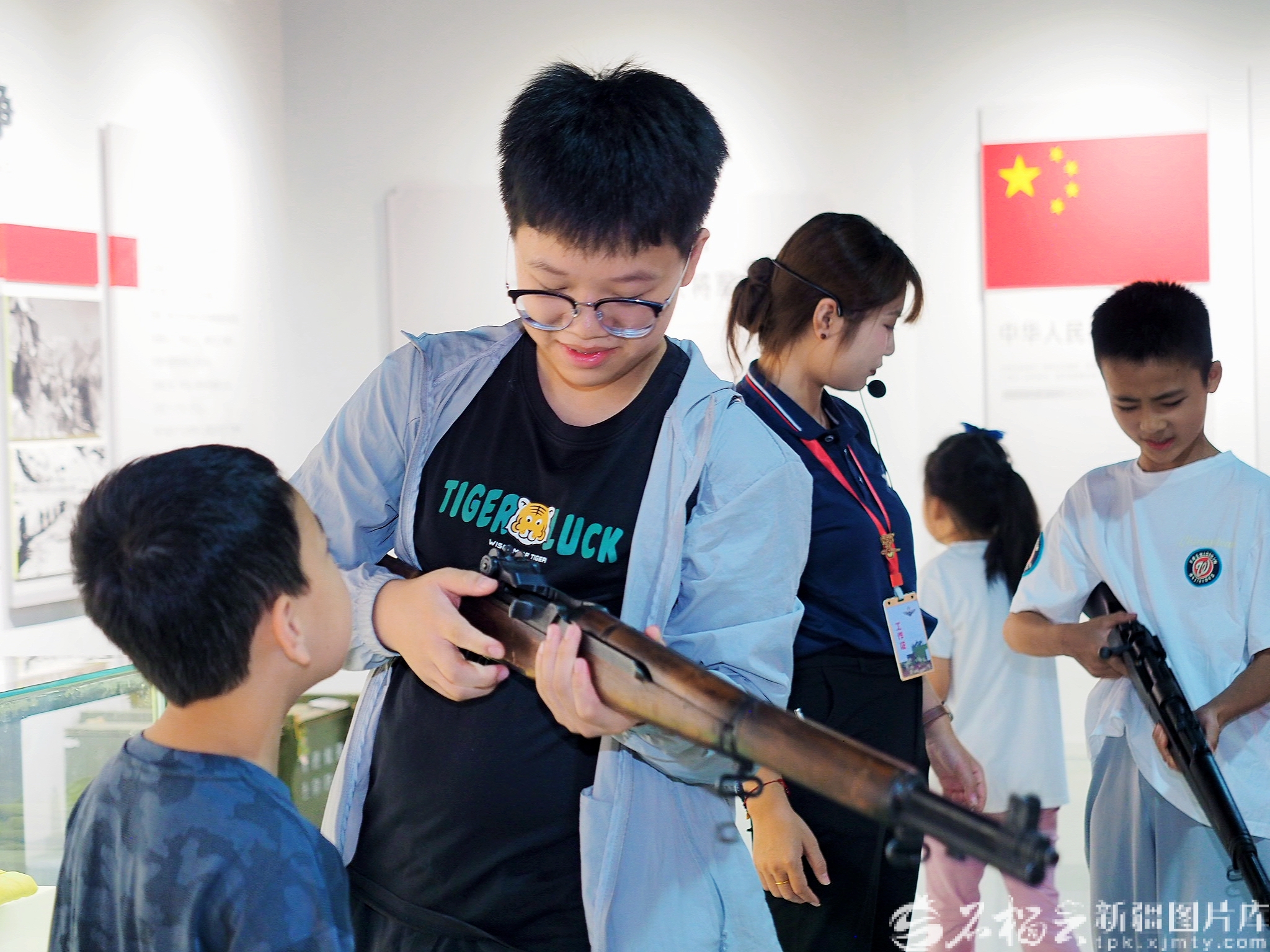 新疆國(guó)防軍事陳列館講解員給孩子們講解。 張柯 攝