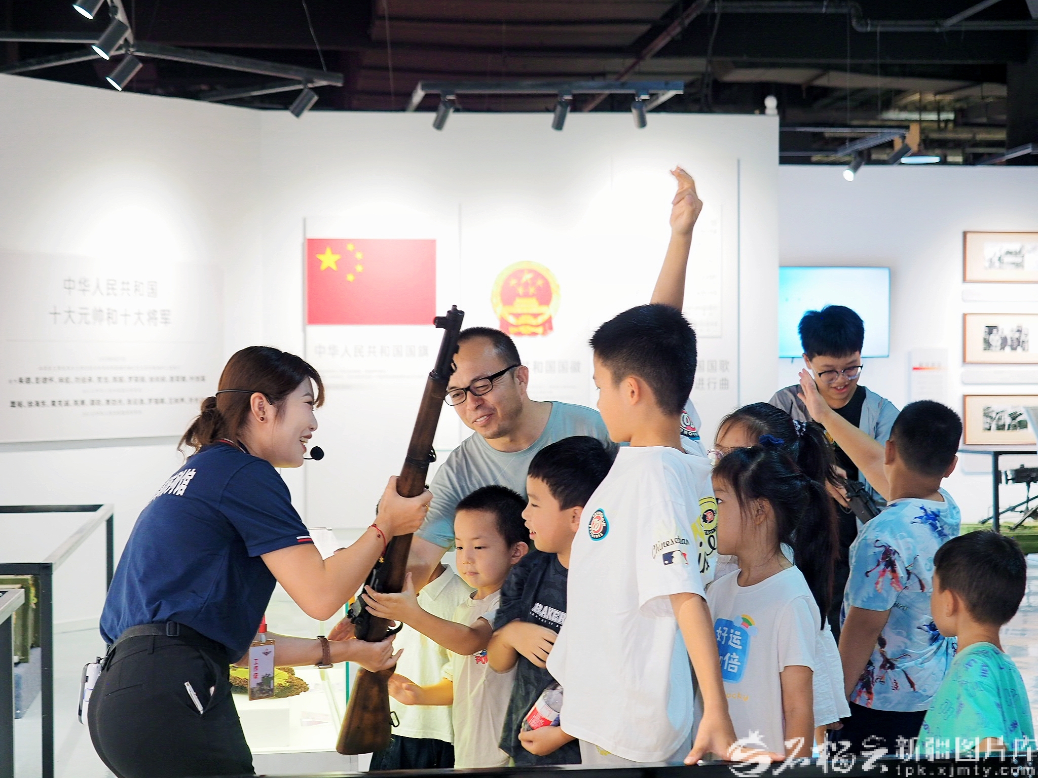 新疆國(guó)防軍事陳列館位于昌吉市的新疆大劇院內(nèi),面積3100平方米,通過(guò)400多件展品全面展示中國(guó)國(guó)防軍事力量發(fā)展壯大的輝煌歷程。自8月9日開(kāi)館以來(lái),已接待參觀者7000多人次,另有3000多人預(yù)約參觀。目前參觀者以烏魯木齊市、昌吉回族自治州的中小學(xué)生為主,同時(shí)包括周邊單位團(tuán)建群體、親子家庭和退役軍人等。