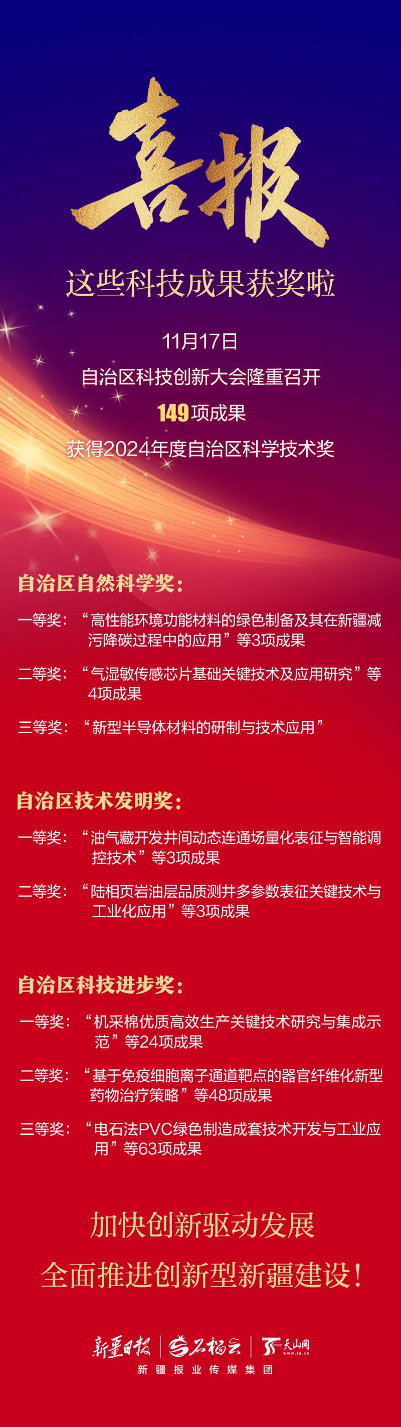 天山網(wǎng)-新疆日報訊(記者謝慧變報道)記者從自治區(qū)科技創(chuàng)新大會上獲悉:我區(qū)5位長期扎根科研一線的專家獲2024年度自治區(qū)科學(xué)技術(shù)突出貢獻(xiàn)獎,149項科技成果分別獲自治區(qū)自然科學(xué)獎、技術(shù)發(fā)明獎、科技進(jìn)步獎。