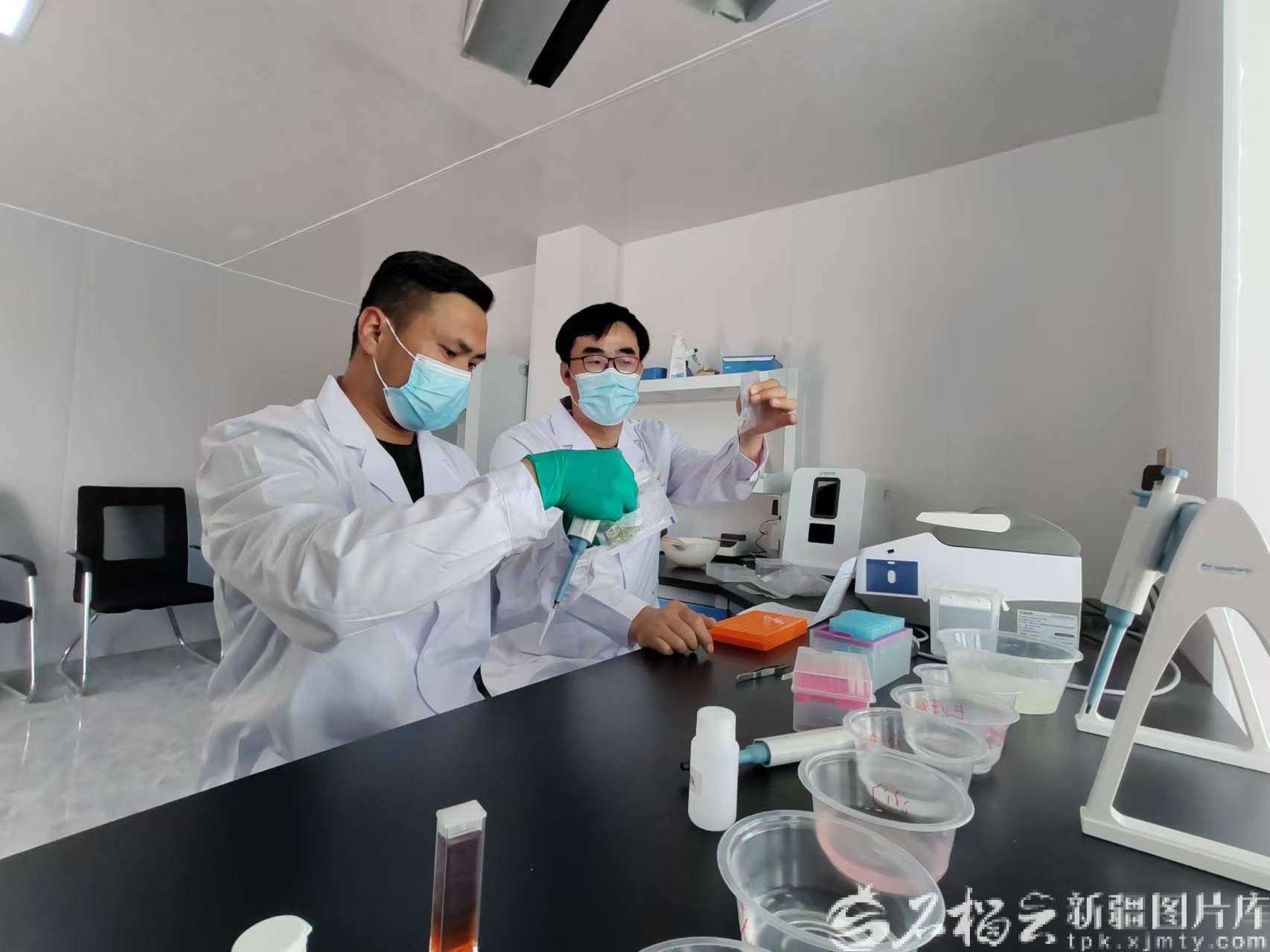在新疆首個對蝦病原分子檢測實驗室,專家們正在進行蝦苗檢測。王曉巖 攝