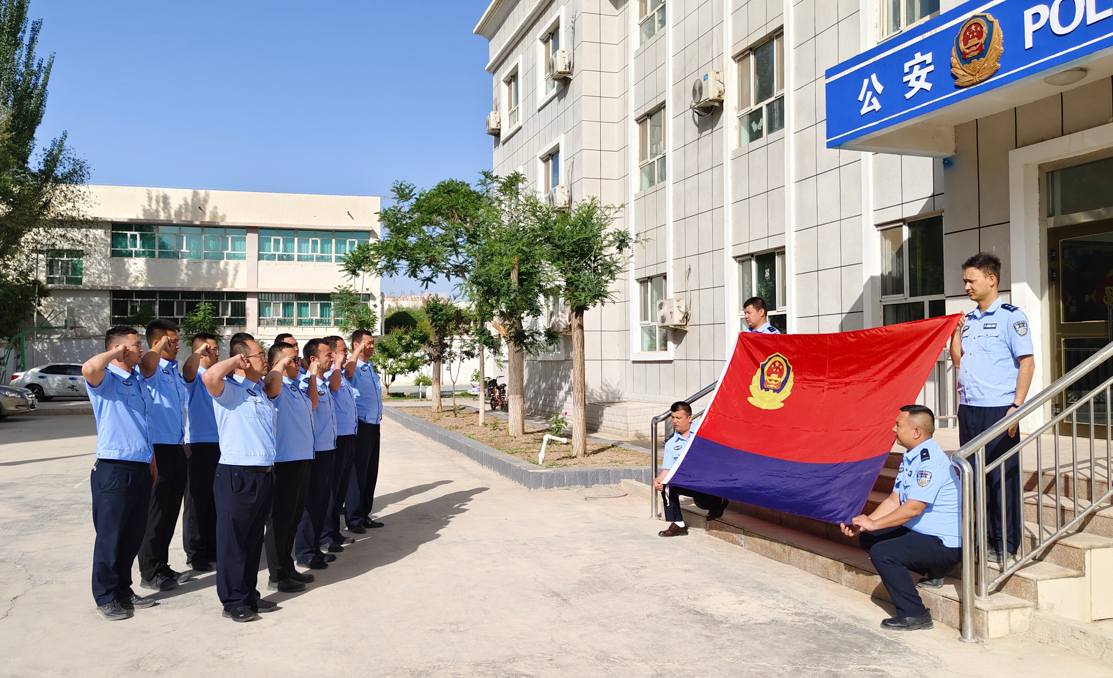 5月3日,輪臺(tái)縣公安局大道南派出所組織民警輔警開(kāi)展重溫入警誓詞活動(dòng)。趙莉 攝