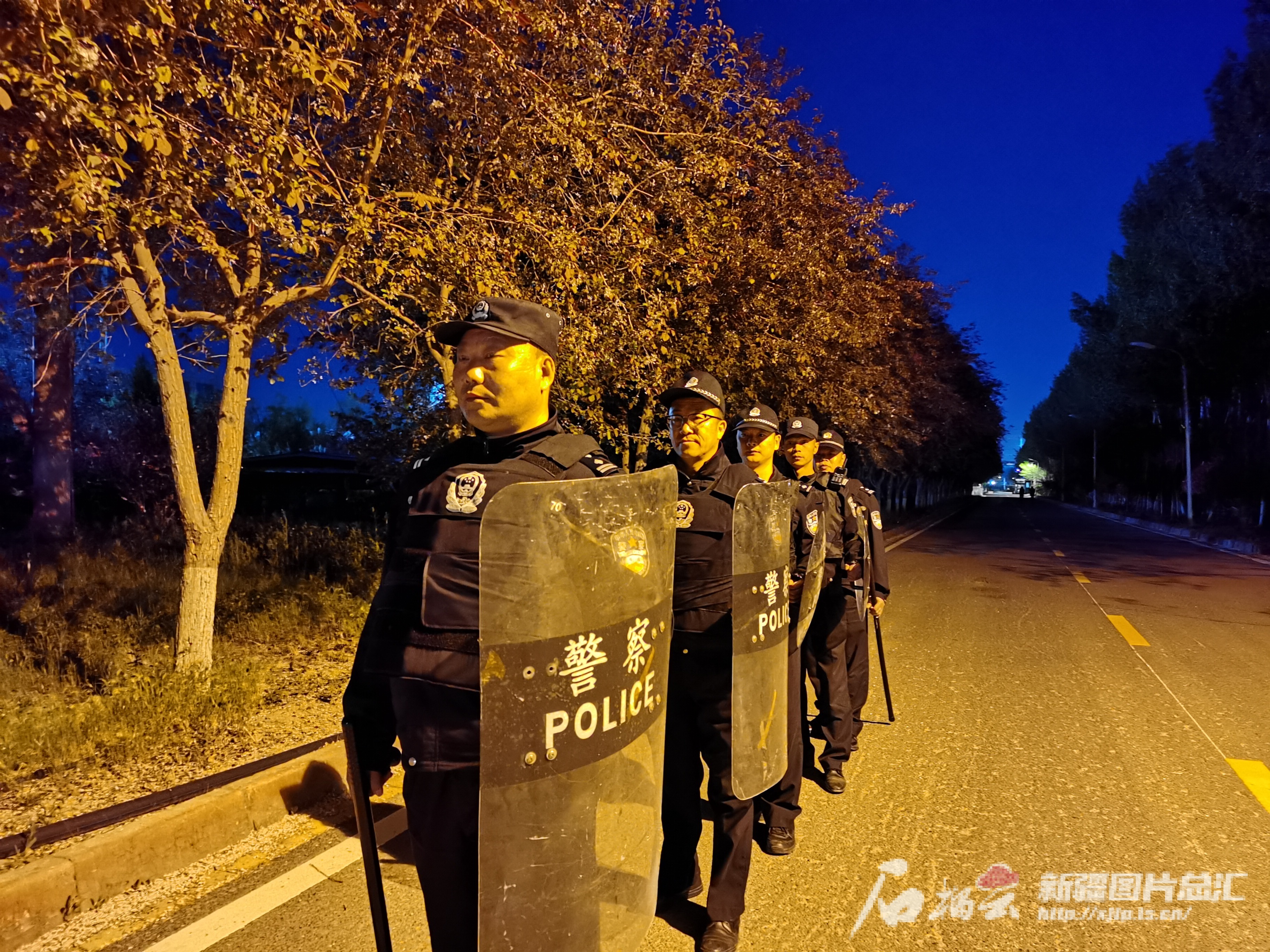 謝勇剛(前)和同事在夜間巡邏。劉文華 攝