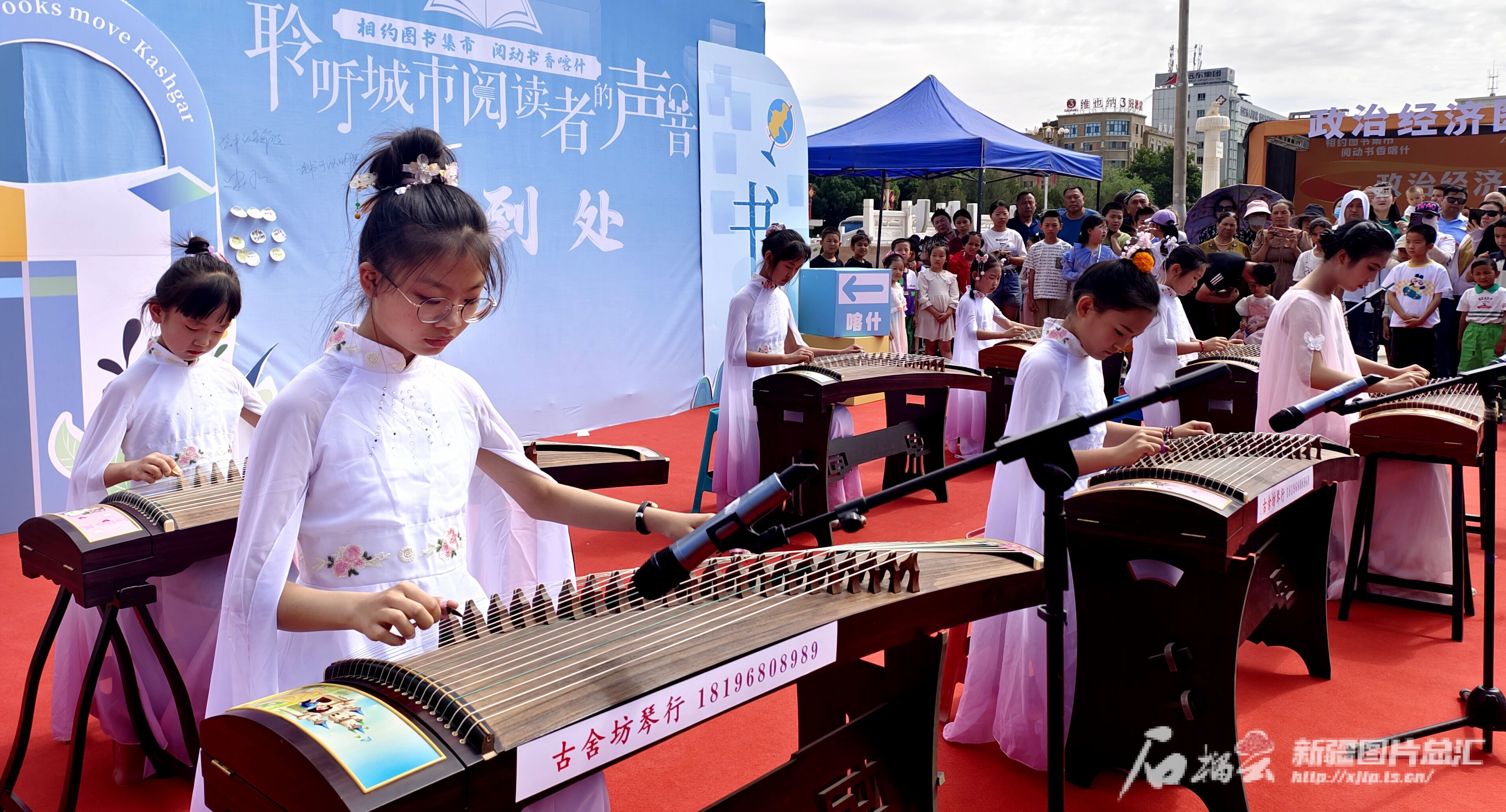 6月10日,小演員們正在表演古箏《荷塘月色》。當(dāng)日,喀什新華書店在喀什市人民廣場(chǎng)舉辦了“相約圖書巴扎,閱動(dòng)書香喀什”活動(dòng)。天山網(wǎng)-新疆日?qǐng)?bào)記者 楊斌攝