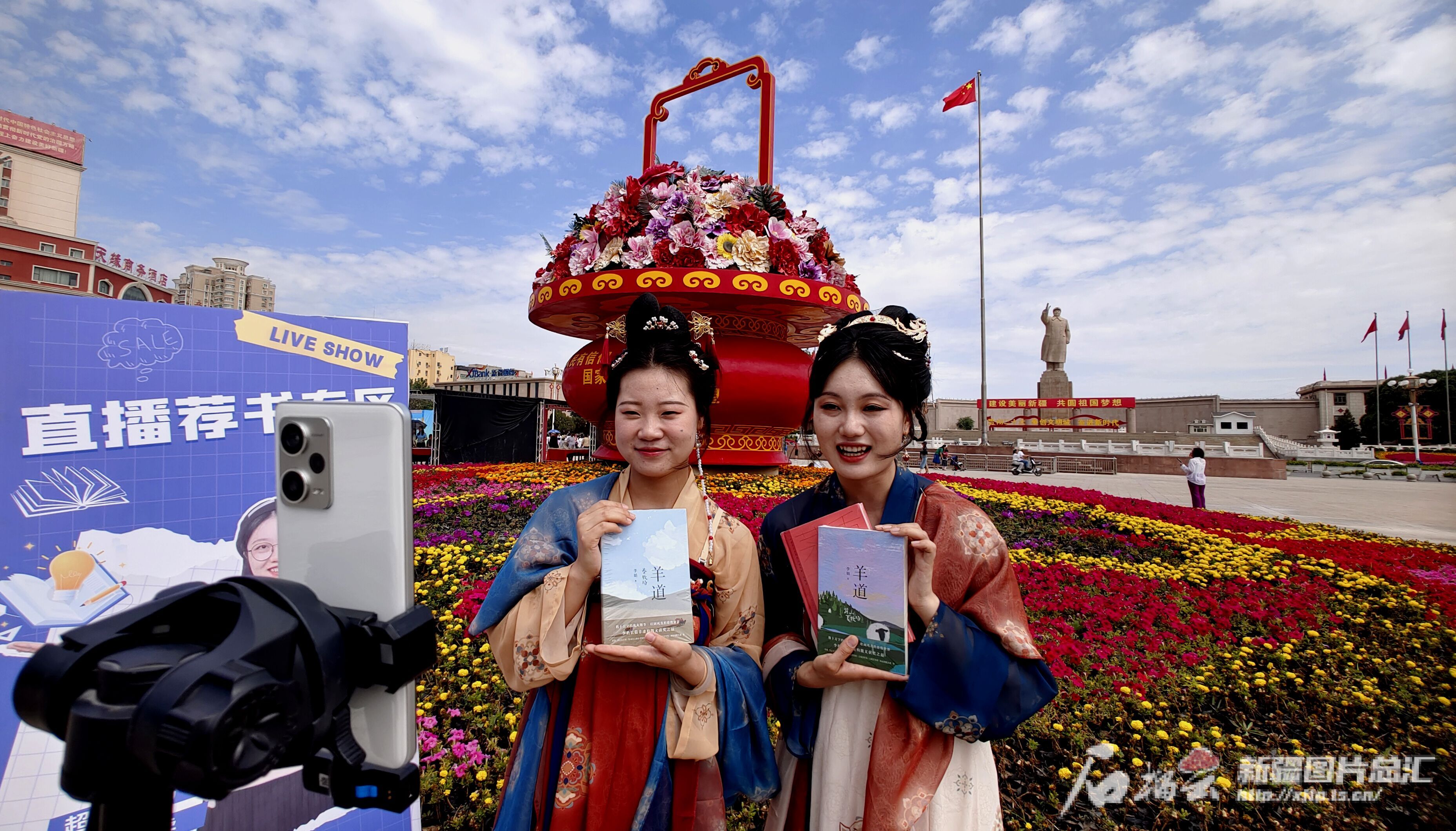 6月10日,喀什新華書店工作人員李紫薇(左)、王雪瑩(右)正在進(jìn)行視頻直播。當(dāng)日,喀什新華書店在喀什市人民廣場(chǎng)舉辦了“相約圖書巴扎,閱動(dòng)書香喀什”活動(dòng)。天山網(wǎng)-新疆日?qǐng)?bào)記者 楊斌攝