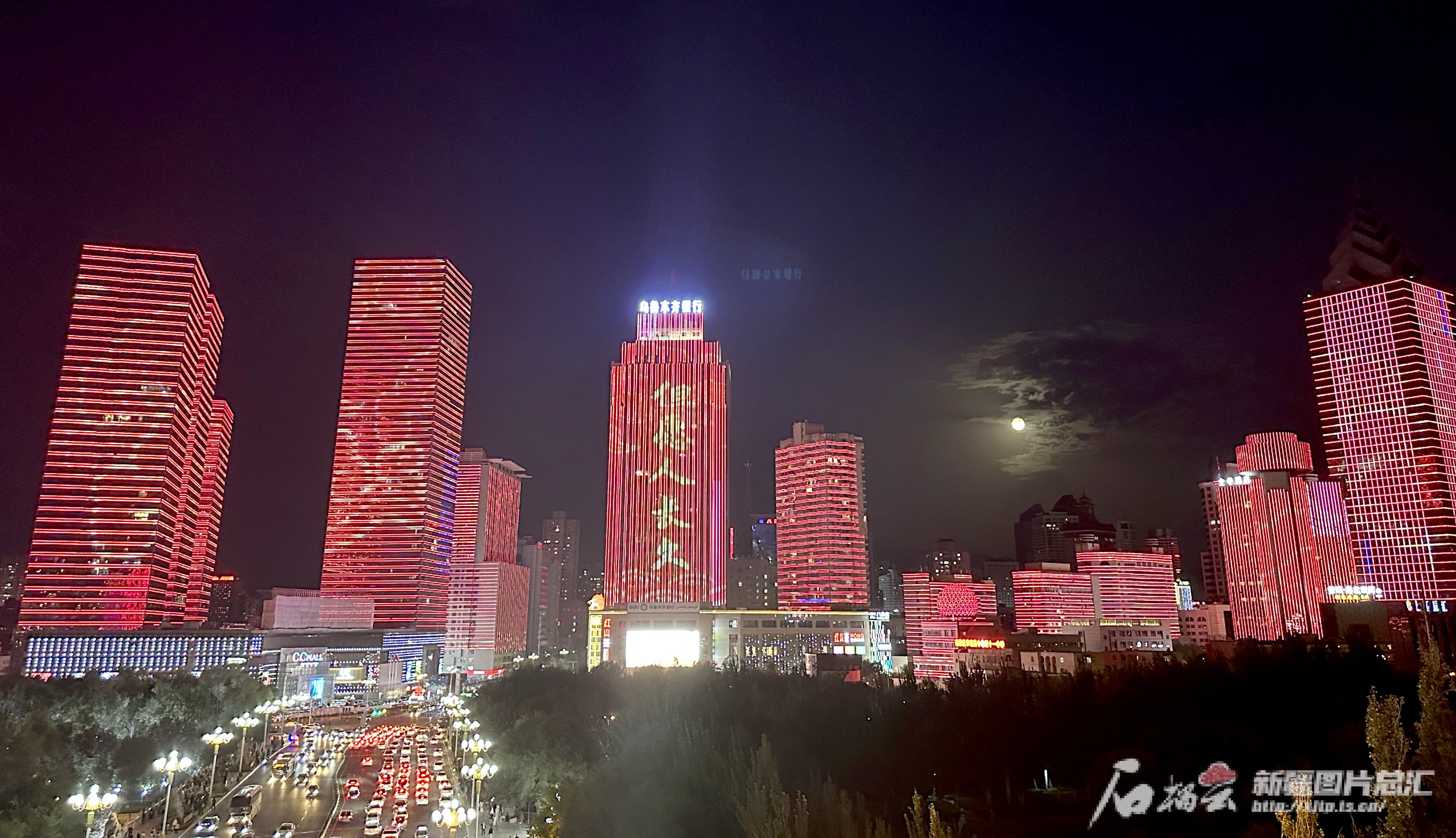 9月17日,烏魯木齊市上演中秋燈光秀。天山網(wǎng)-新疆日?qǐng)?bào)記者 韓亮攝