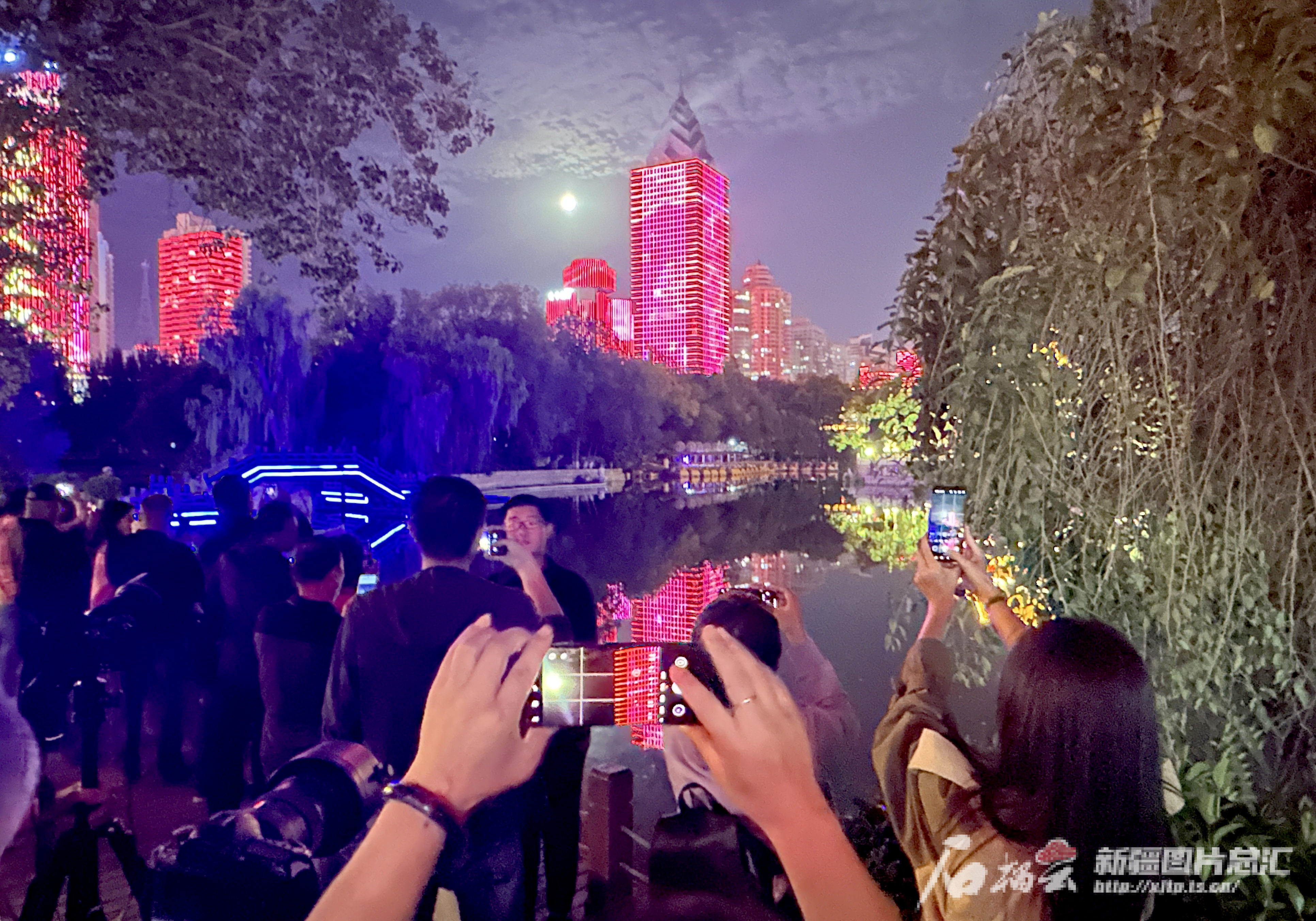 9月17日,市民在拍攝中秋燈光秀。天山網(wǎng)-新疆日?qǐng)?bào)記者 韓亮攝
