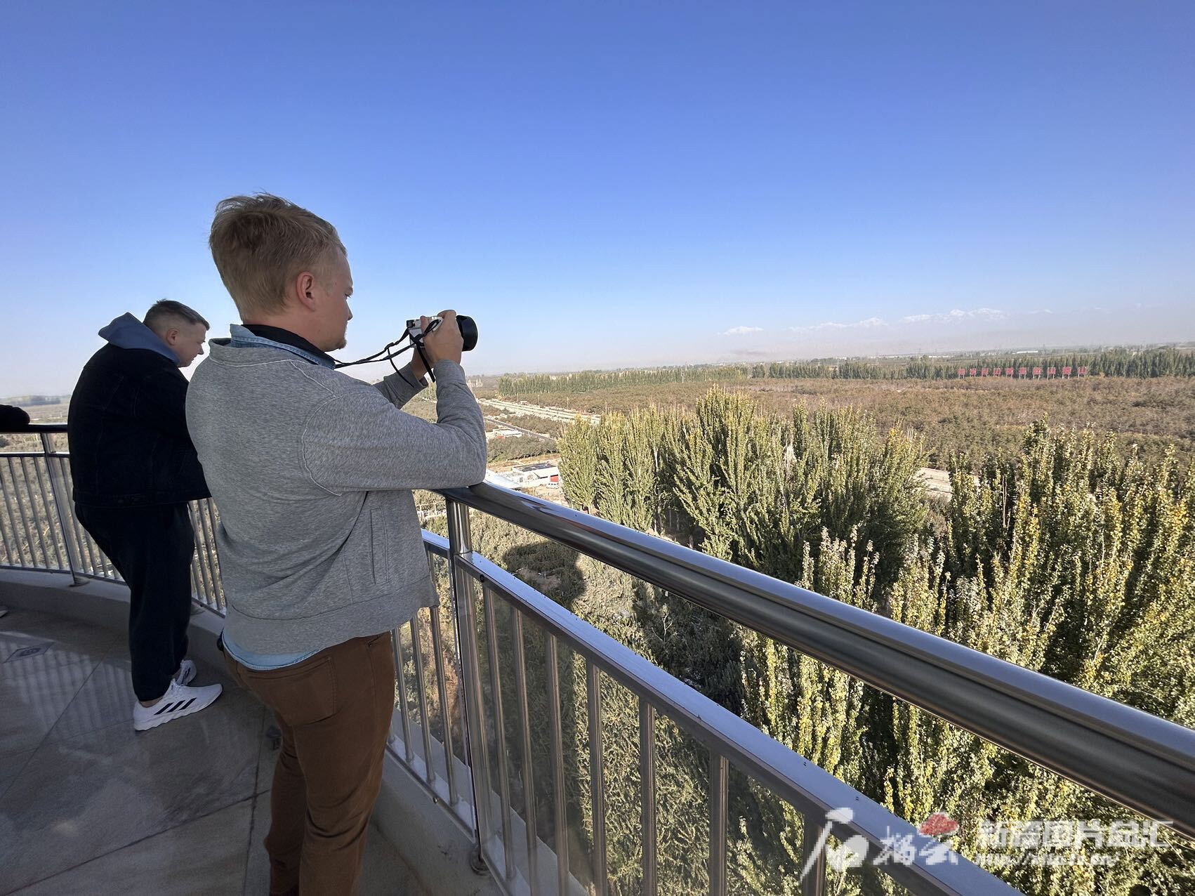 自媒體創(chuàng)作者們在觀光塔遠(yuǎn)眺拍攝。天山網(wǎng)-新疆日報(bào)記者 張小宓攝