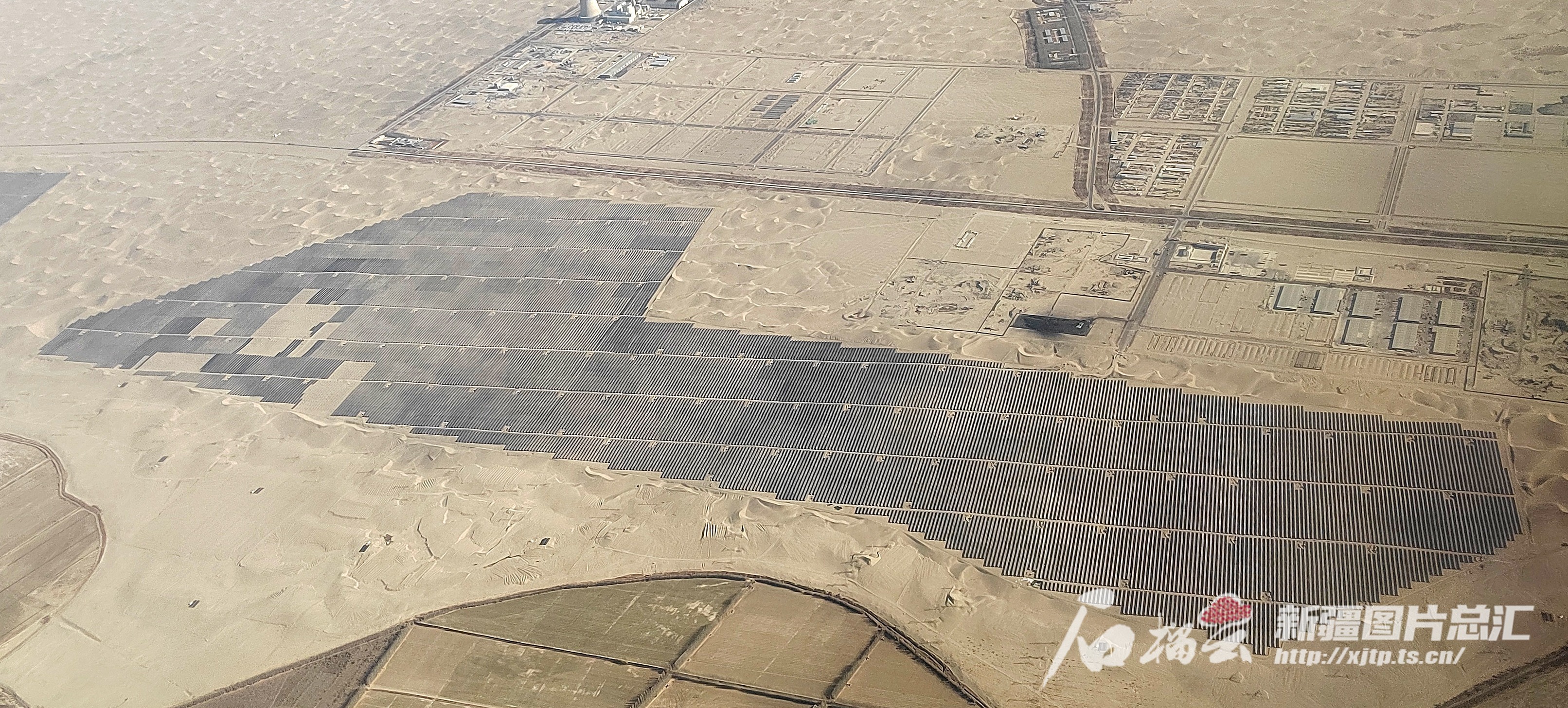 11月28日,俯瞰位于葉城縣洛克鄉(xiāng)國(guó)道北側(cè)鎖邊空白區(qū)連片的防沙網(wǎng)格。