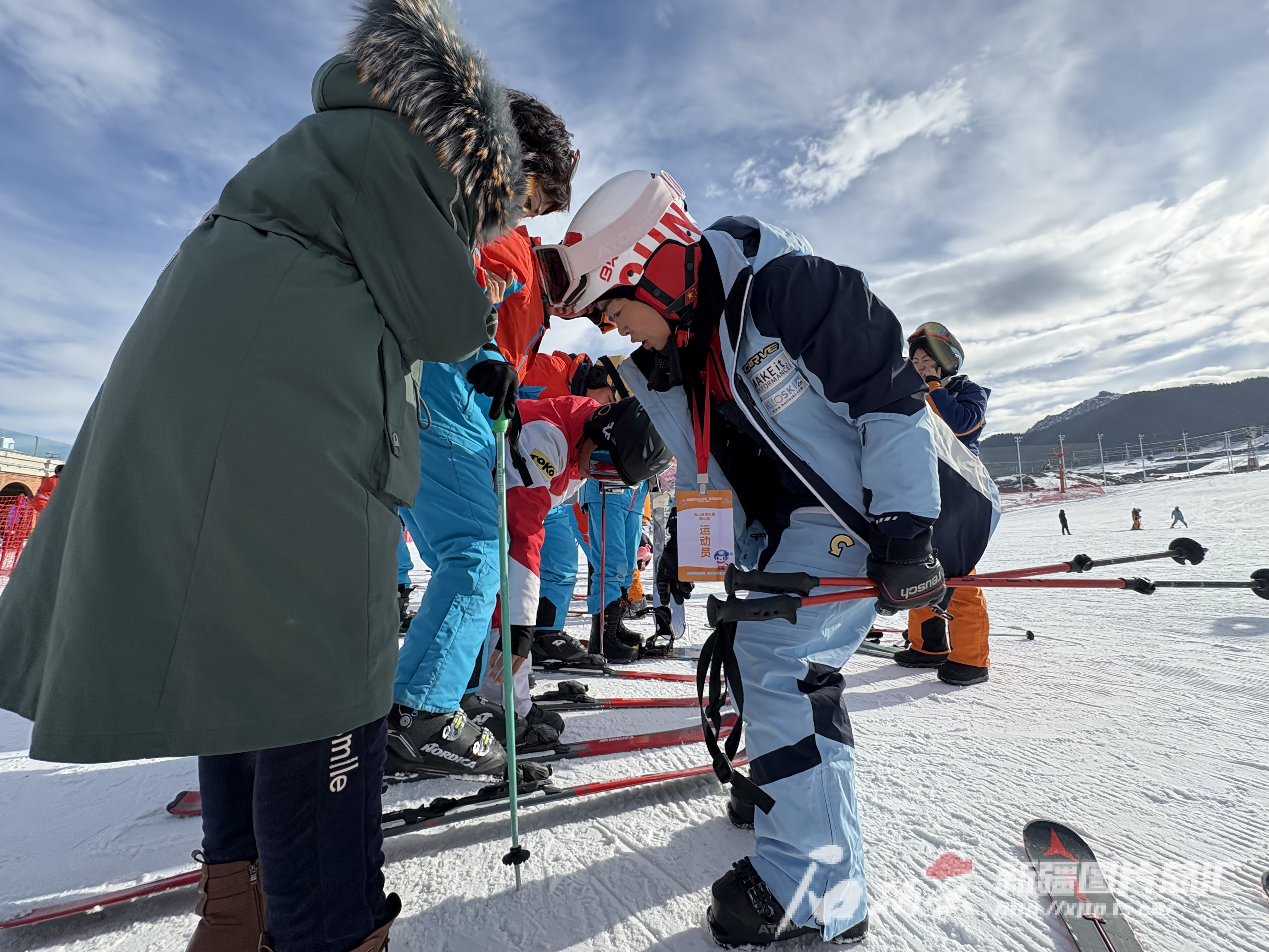 自治區(qū)第二屆冬季運(yùn)動會高山滑雪(群眾組)比賽后,劉柯正在教朋友們滑雙板。天山網(wǎng)-新疆日報(bào)記者 王晶晶攝