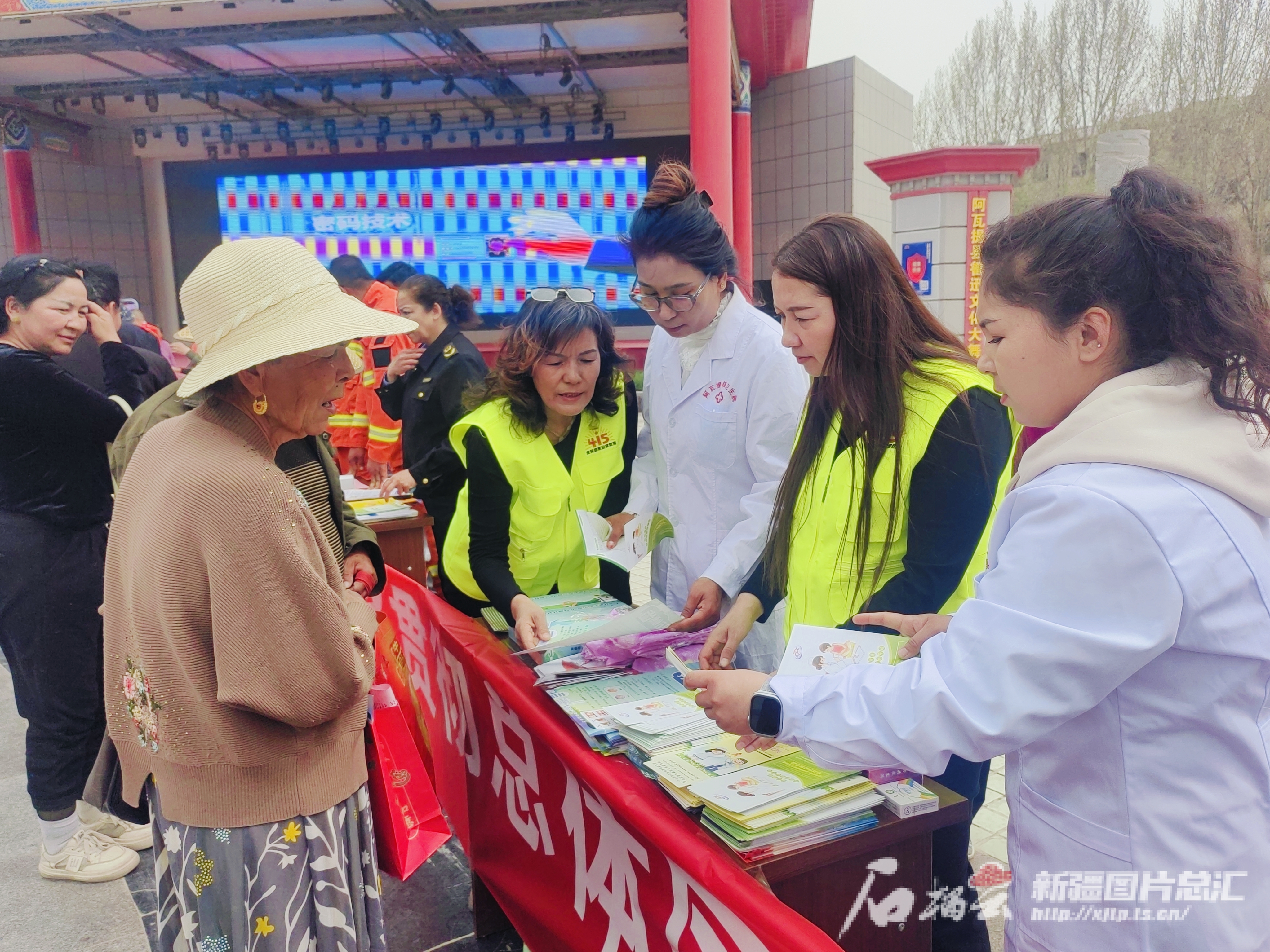 當(dāng)日午飯過后,袁光超出門散步時(shí)路過阿瓦提縣刀郎文化廣場(chǎng),看到這里正在舉行阿瓦提縣保密宣傳教育月、憲法法律宣傳月暨“4·15”全民國家安全教育日宣傳教育活動(dòng)。